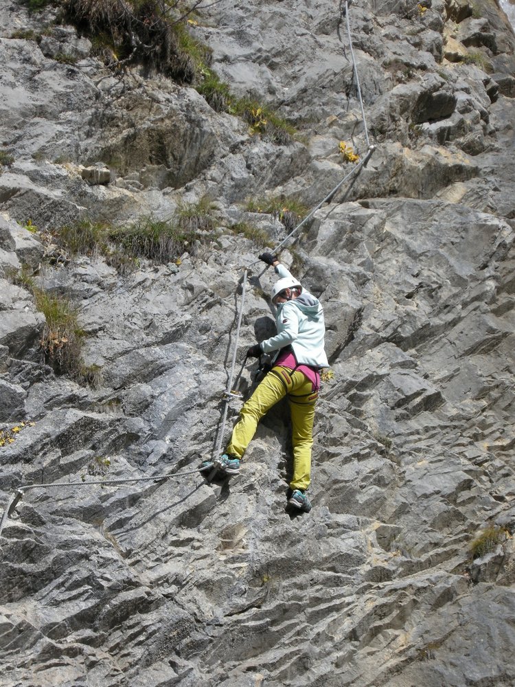 Komplette Klettersteigausrüstung, evtl. Klettersteighandschuhe.
