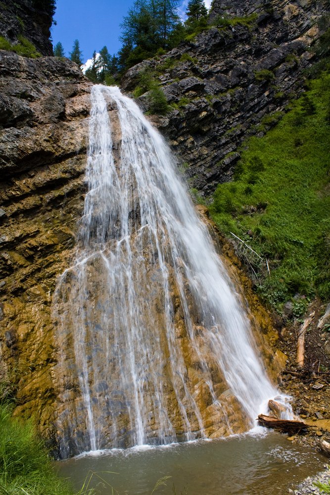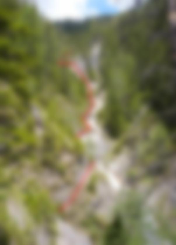 Einige kurze Stellen B/C, meist aber leichter. Beim ersten Wasserfall gibt es eine Variante C/D (siehe Topo).