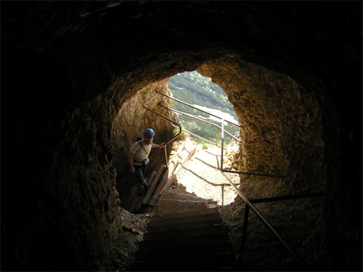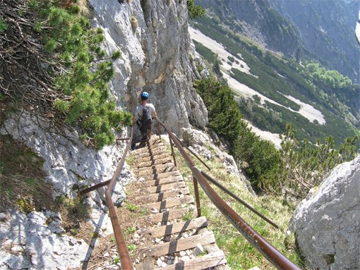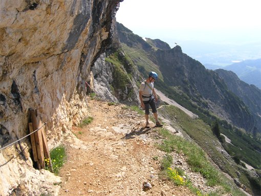 Kurze aber originelle Steiganlage auf das Untersbergplateau. Der Steig führt durch kleine Tunnels und ist gut mit Leitern und Drahtseilen abgesichert. Auch ein Besuch der auf dem Zustiegsweg liegenden Eishöhle (Die Schellenberger Eishöhle ist die einzige und größte erschlossene Eisschauhöhle Deutschlands und liegt auf 1570m über dem Meer) bietet sich an.