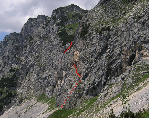 Vom Parkplatz auf dem markierten Weg zur Toni Lenz Hütte. Hinter der Hütte aufwärts und links in Richtung Hochthrongipfel (Eishöhle/Mittagscharte) bis man zum Beginn der Versicherungen gelangt.
