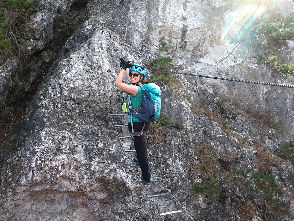 Der Steig ist gut mit Drahtseil und Steigbügeln versichert.