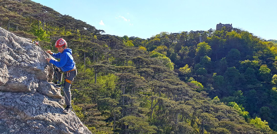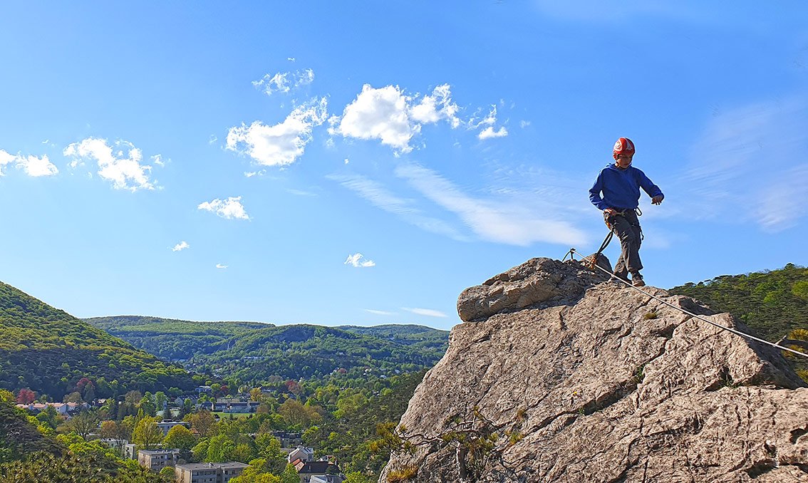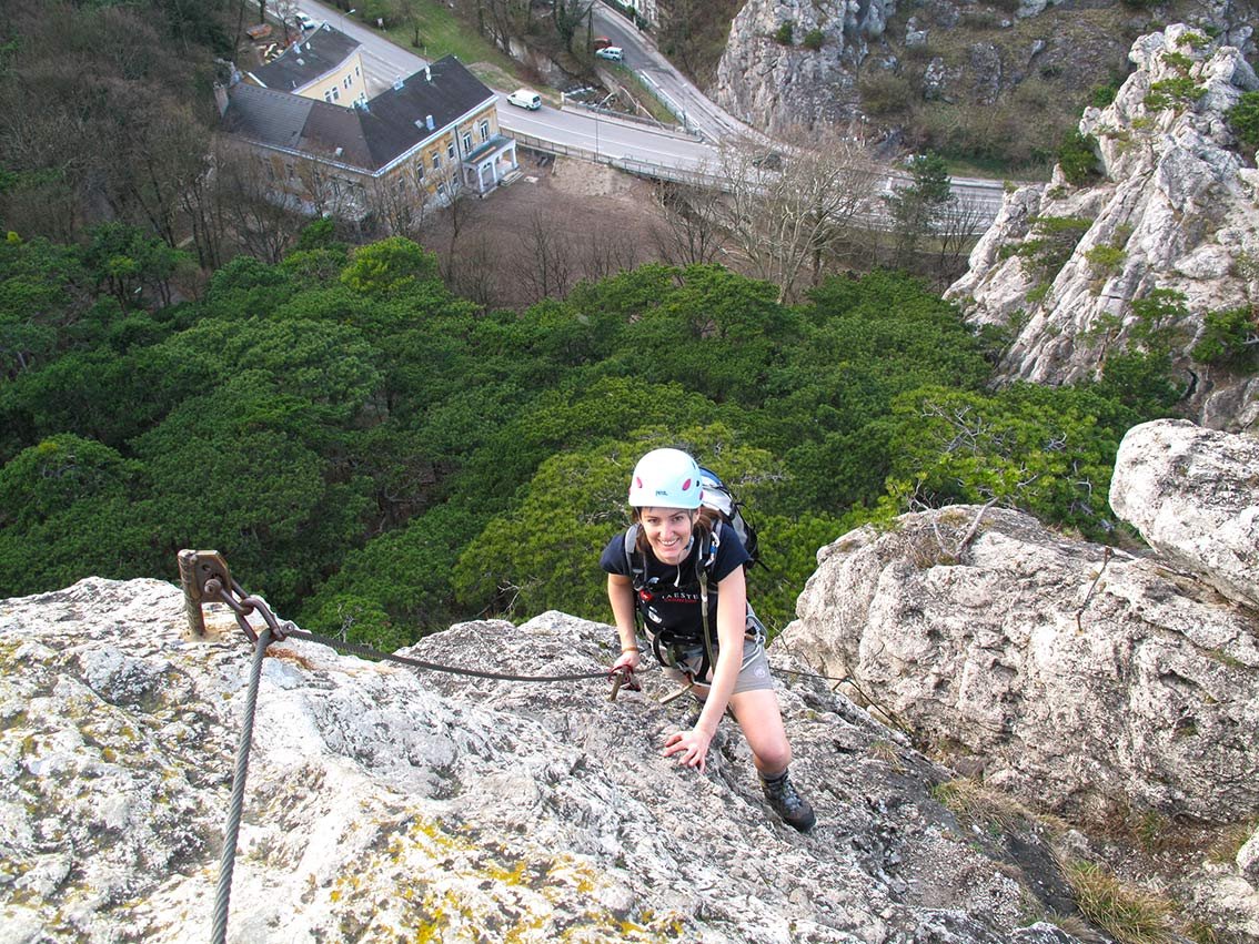 Sehr schöner Anfänger-Klettersteig vor den Toren Wiens, der auch für klettergewandte Kinder geeignet ist. Der Steig nützt die Felsformationen sehr gut aus. Zwischen den einzelnen Abschnitten gibt es nur kurzes, leichtes Gehgelände. Durch die elegante Linienführung hat man fast immer einen wunderschönen Ausblick auf die Umgebung.