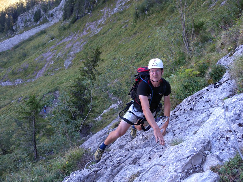 Der Steig ist französisch weit gesichert. Mehr Infos zu den verschiedenen Klettersteigtypen findst du im Buch Sicher Klettersteiggehen.