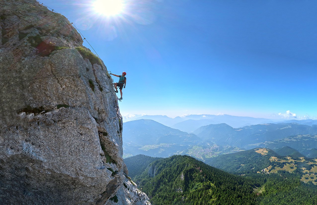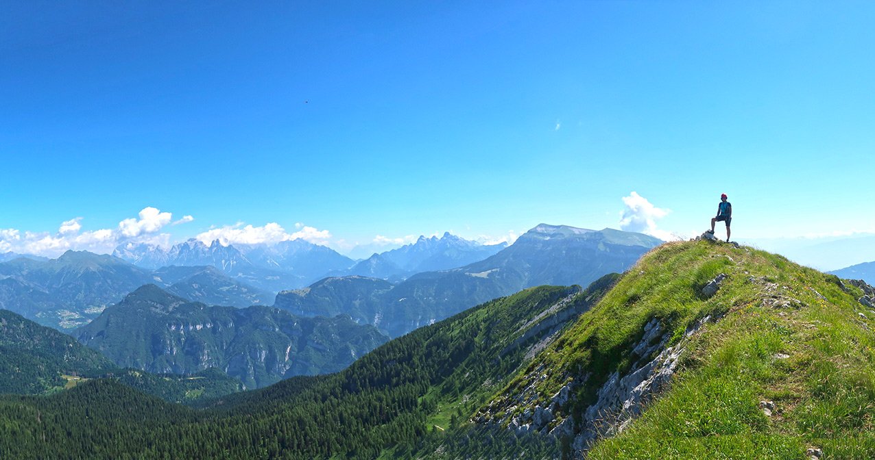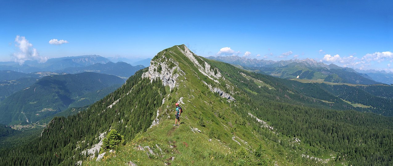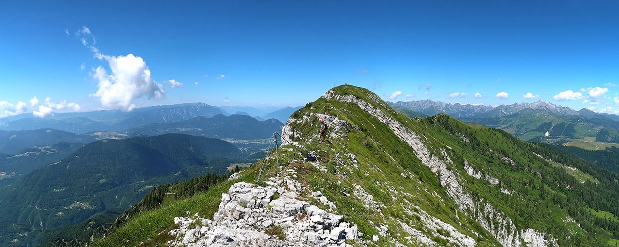 Der Monte Coppolo Klettersteig ist eine wirklich gut gelungene Genuss-Ferrata! Das Stahlseil wurde geschickt an den Felsen verlegt, es sind schöne, teilweise ausgesetzte, aber nie wirklich schwere Klettersteigpassagen zu meistern. Dazwischen viel angenehmes Gehgelände, bei dem man einen tollen Ausblick auf die spitzen Dolomiten-Felstürme der Pala-Gruppe hat. Gesamt eine schöne Drei-Gipfel-Runde, ein schöner Mix aus Gratwandern und Klettersteiggehen an den südlichen Ausläufern der Dolomiten.