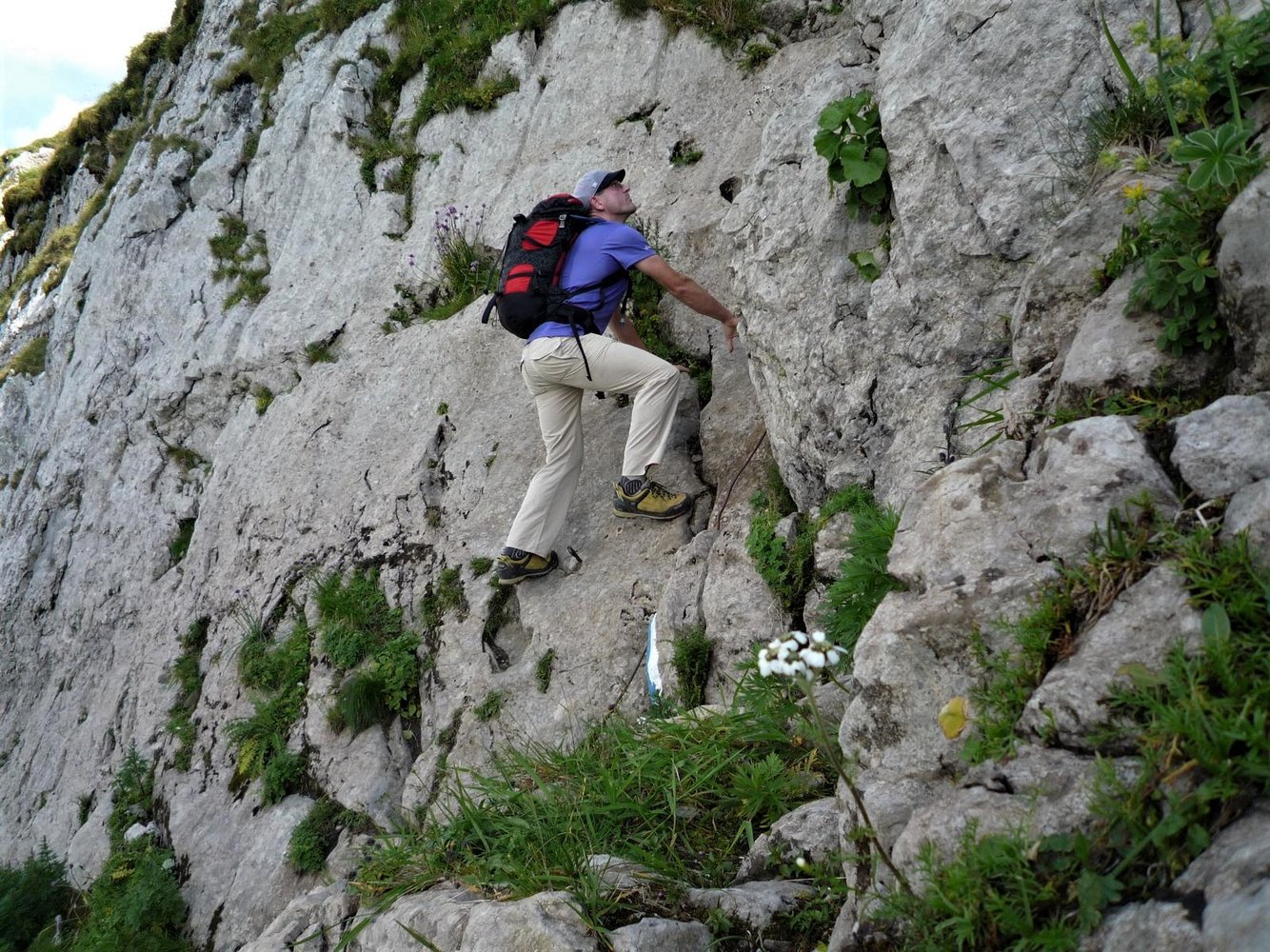 Keine Klettersteigausrüstung notwendig, jedoch für Ungeübte ein Sicherungsseil.