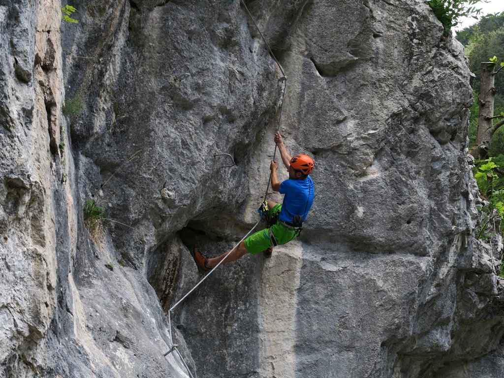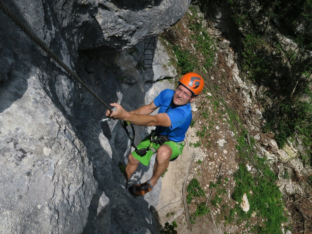 Komplette Klettersteigausrüstung und Helm, für Schwächere für die schwierigen Routen kurzes Seil