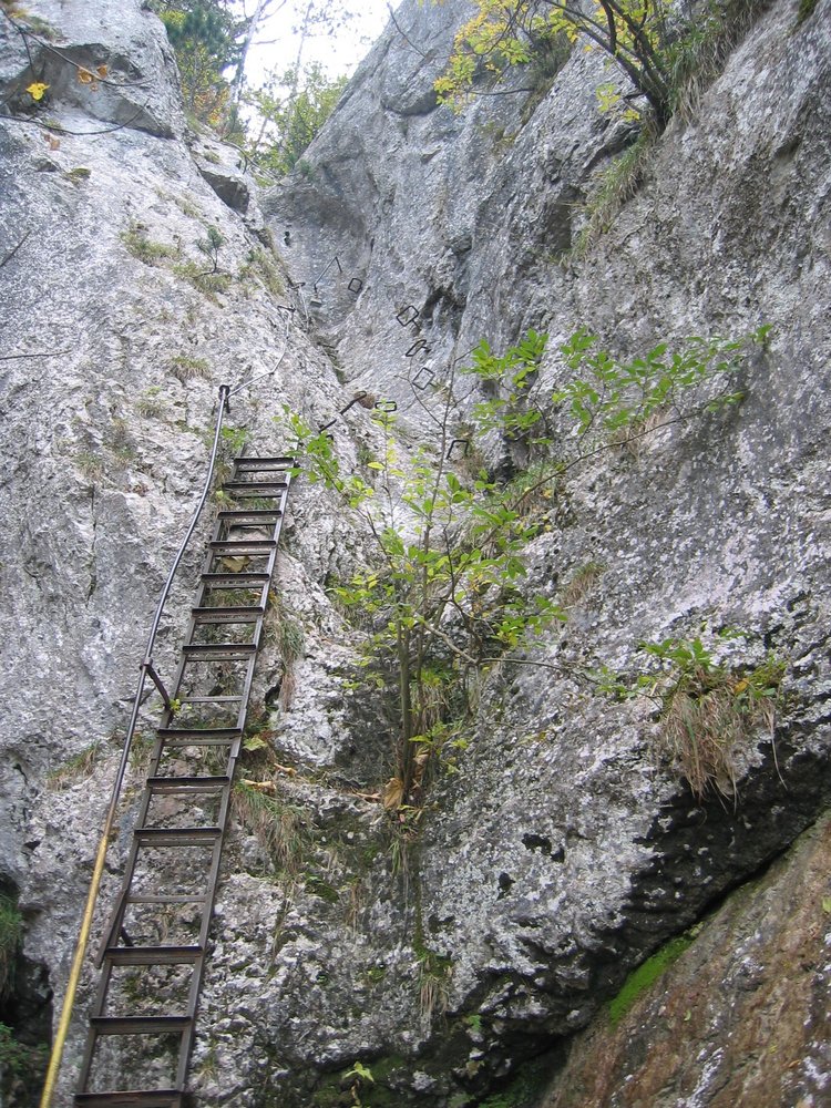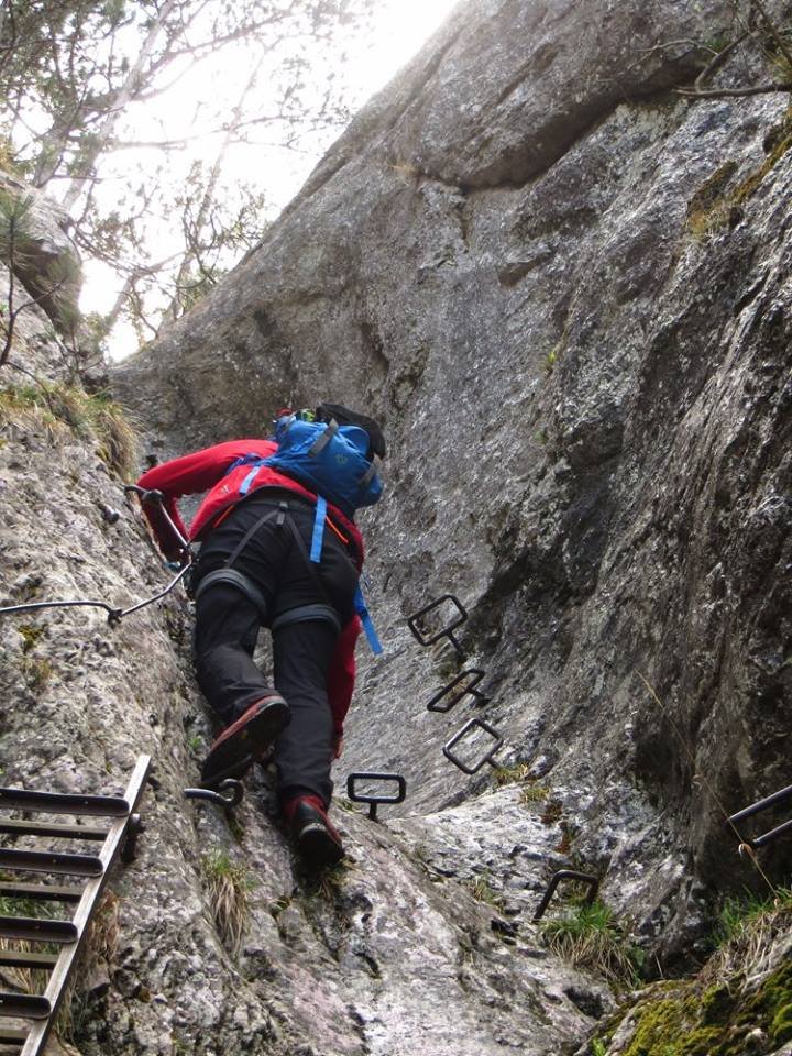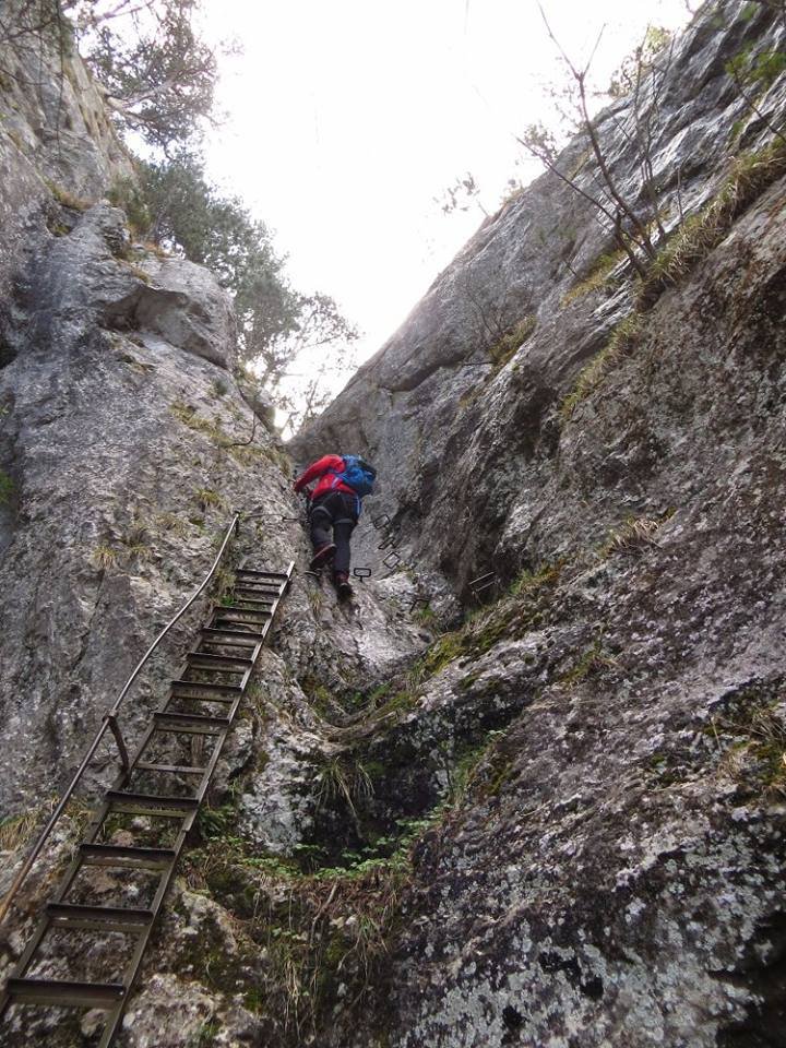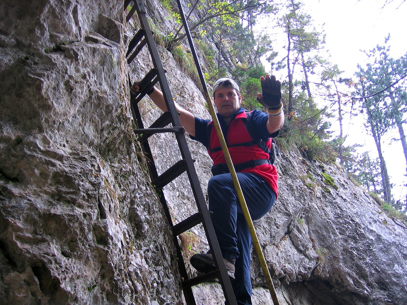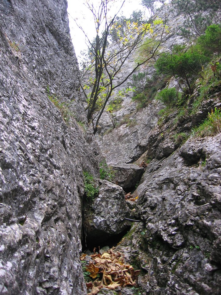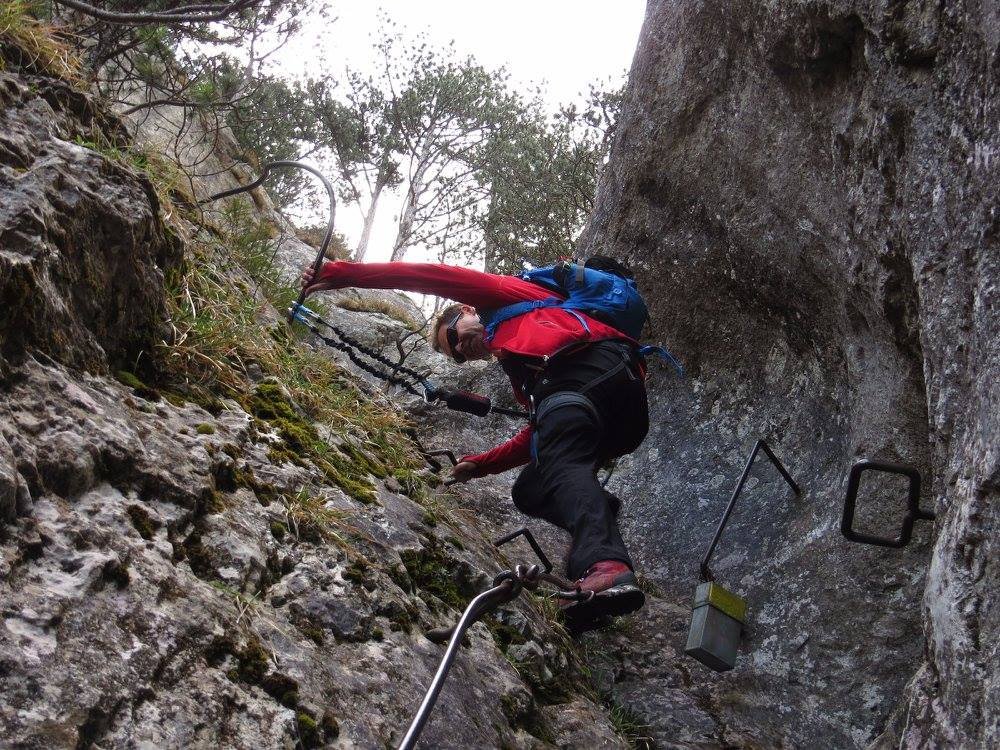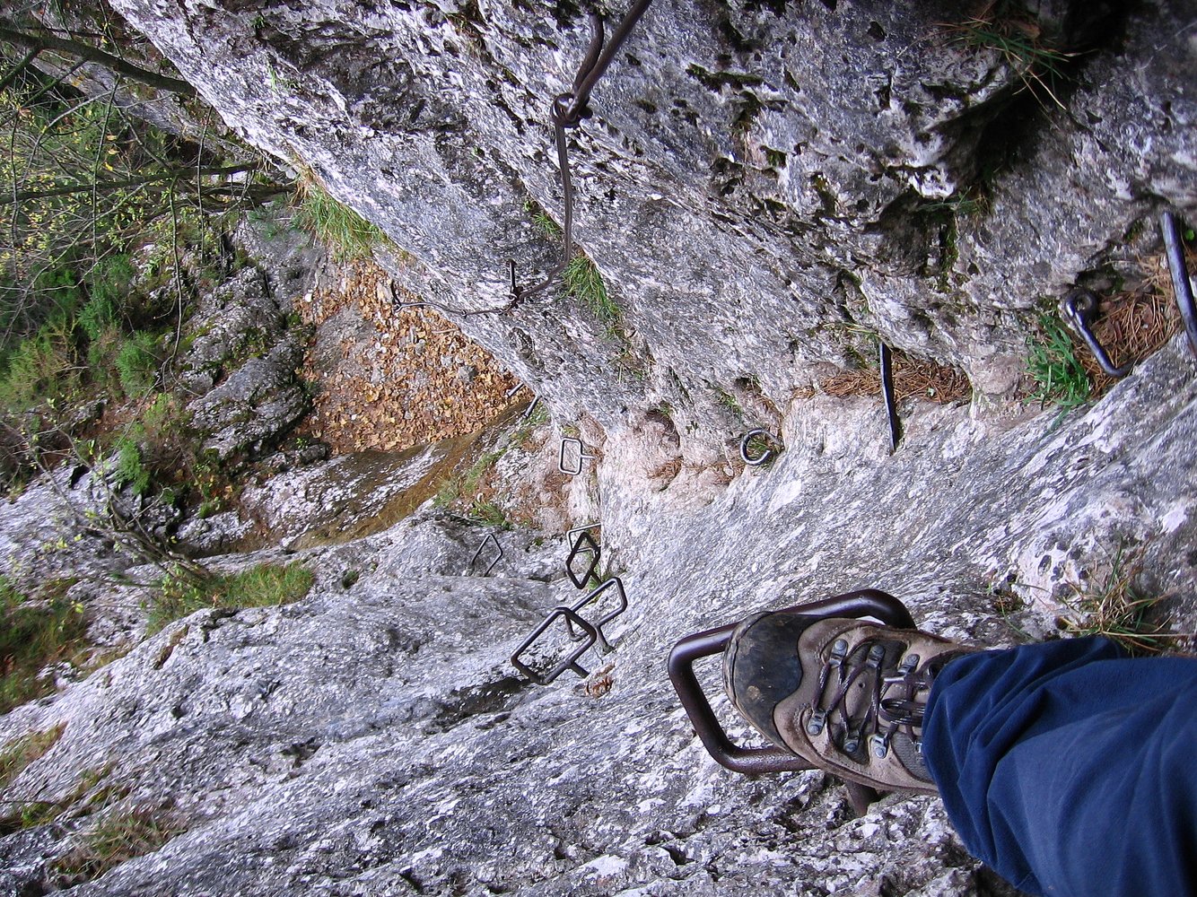 Der Naturfreundesteig durch die Kleine Klause ist in wildromantischer Romantischer und abwechslungsreicher Aufstieg durch die Kleine Klause. Der eigentliche Klettersteig-Teil beträgt rd. 50 Hm, danachfolgen noch kurze ungesicherte Stufen bis 1-/1. Es gibt kein Drahtseil, sondern Klemmen und historische Eisenstangen. ein kurzer, überaus reichlich versicherter Steig durch diesen schluchtartigen Graben.