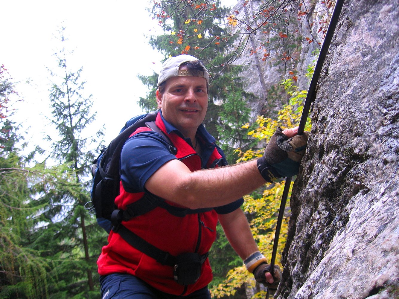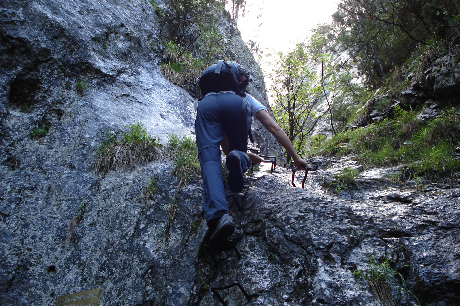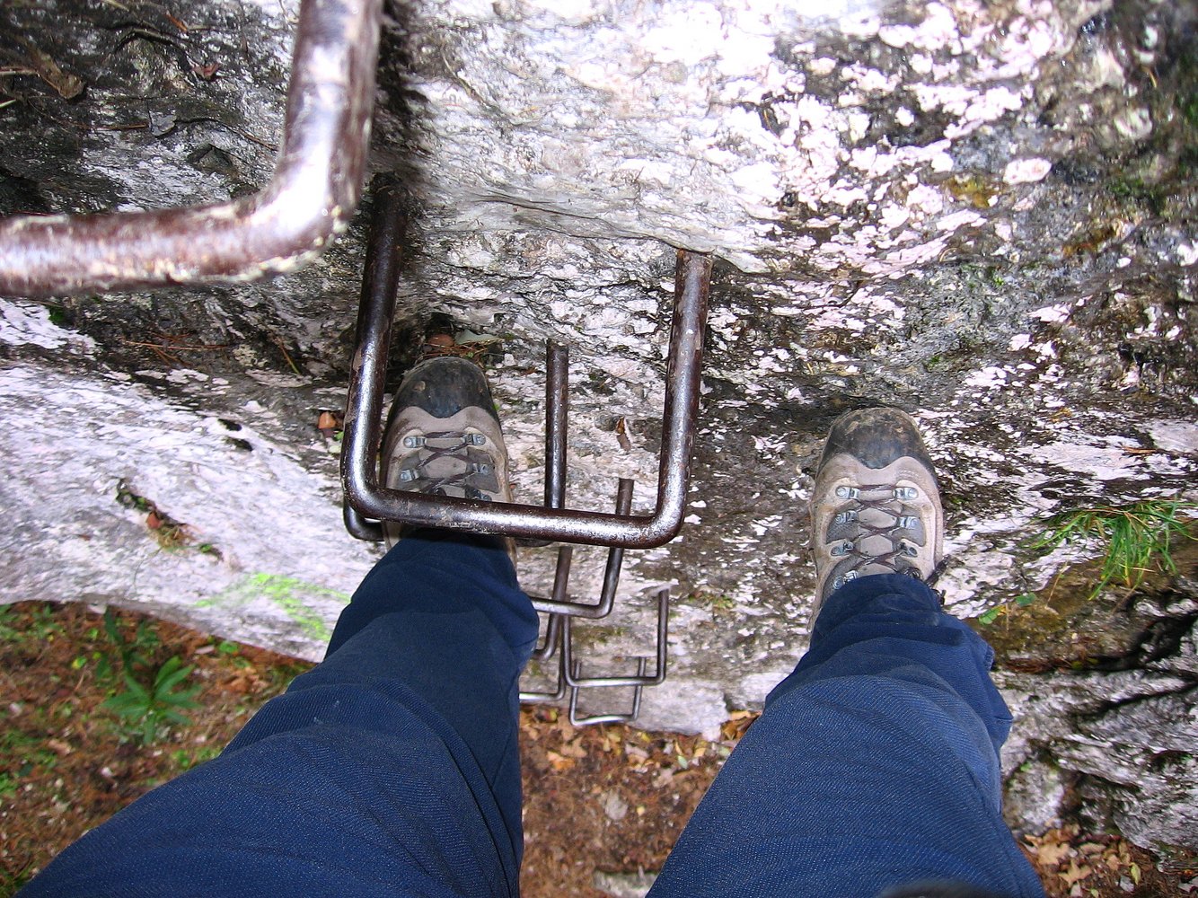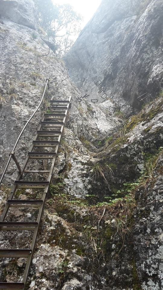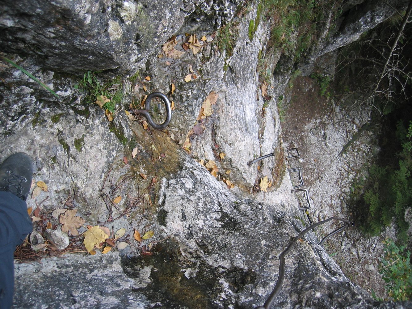 Der Naturfreundesteig durch die Kleine Klause ist in wildromantischer Romantischer und abwechslungsreicher Aufstieg durch die Kleine Klause. Der eigentliche Klettersteig-Teil beträgt rd. 50 Hm, danachfolgen noch kurze ungesicherte Stufen bis 1-/1. Es gibt kein Drahtseil, sondern Klemmen und historische Eisenstangen. ein kurzer, überaus reichlich versicherter Steig durch diesen schluchtartigen Graben.