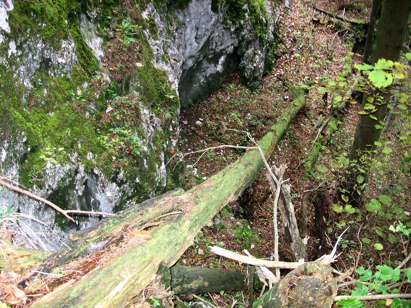 Wer sofort wieder zum Ausgangspunkt zurückkehren will, steigt am besten vom Waldeggerhaus über die grün markierte Krumme Ries ab. Eine schöne Runde ergibt sich, wenn man vom Waldeggerhaus der blauen Markierung zur Waldegger Klause (Große Klause) folgt und durch diese (A) absteigt.