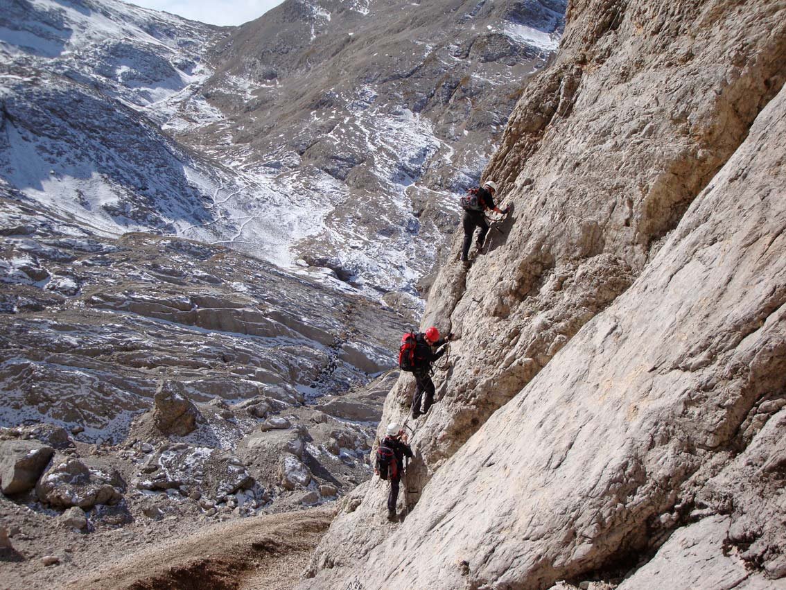 Trotz der geringen Schwierigkeiten eine nicht zu unterschätzende Tour! Im Bereich des Passo Ombretta (Biwak) hält sich oft recht lange der Schnee. Die Tour wird gerne als Eingehtour für die Via ferrata della Marmolada (Westgrat) gemacht.