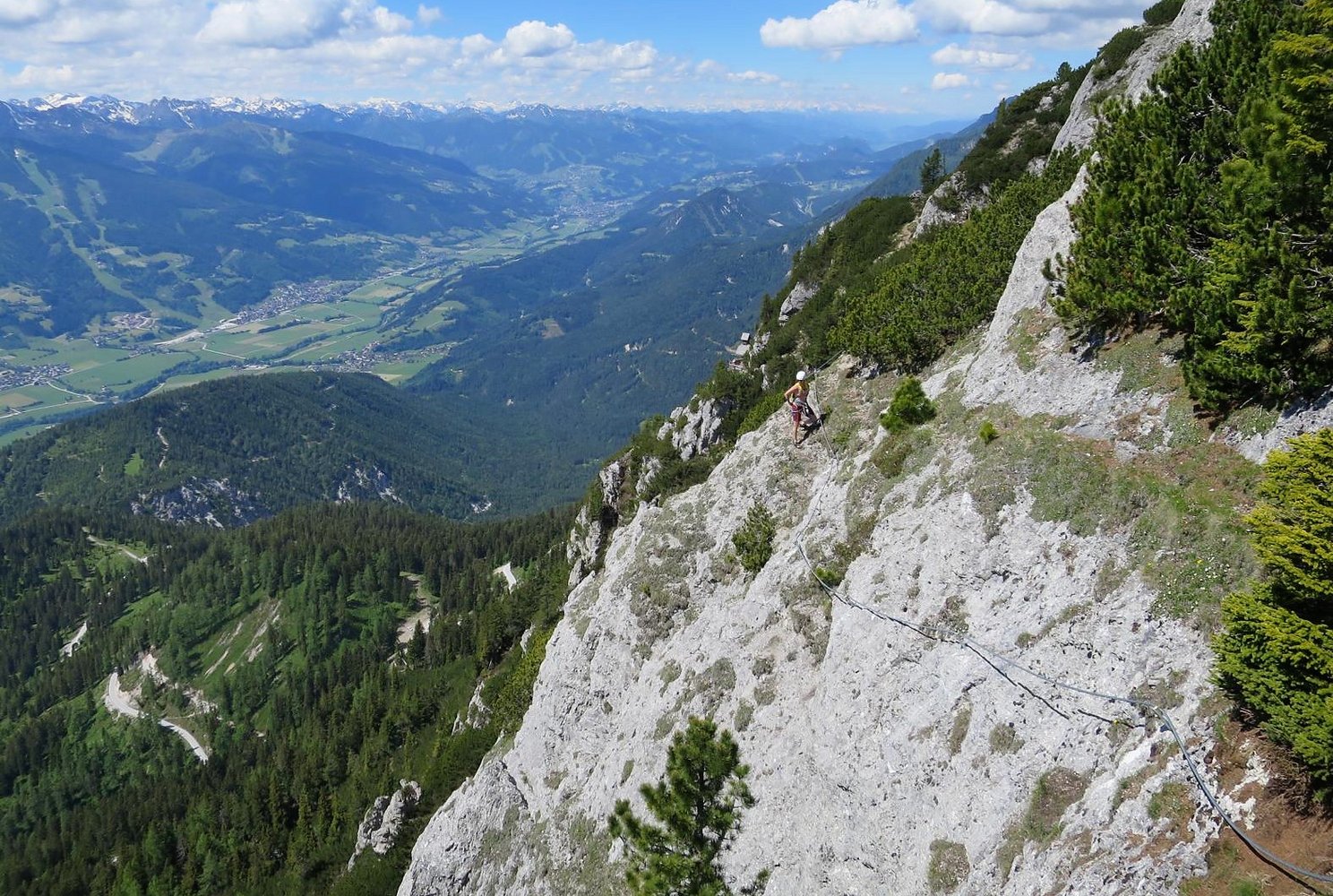 Mit den Klettersteigen Franz und Peter ist der Stoderzinken ein lohnendes, eigenständiges Klettersteig-Ziel geworden, das seinem berühmten Nachbarn, dem Dachstein in Sachen Genuss-Klettersteig zurecht den Rang abläuft. Man kann hier nun ohne viel Zustieg einen Ferrata-Tag verbringen und danach geht sich noch ein Run mit der Zipline aus, auch Kostenmäßig ist der Stoder attraktiver als der Dachtein, da man hier keine Seilbahn braucht und die Maut auch deutlich günstiger ist.