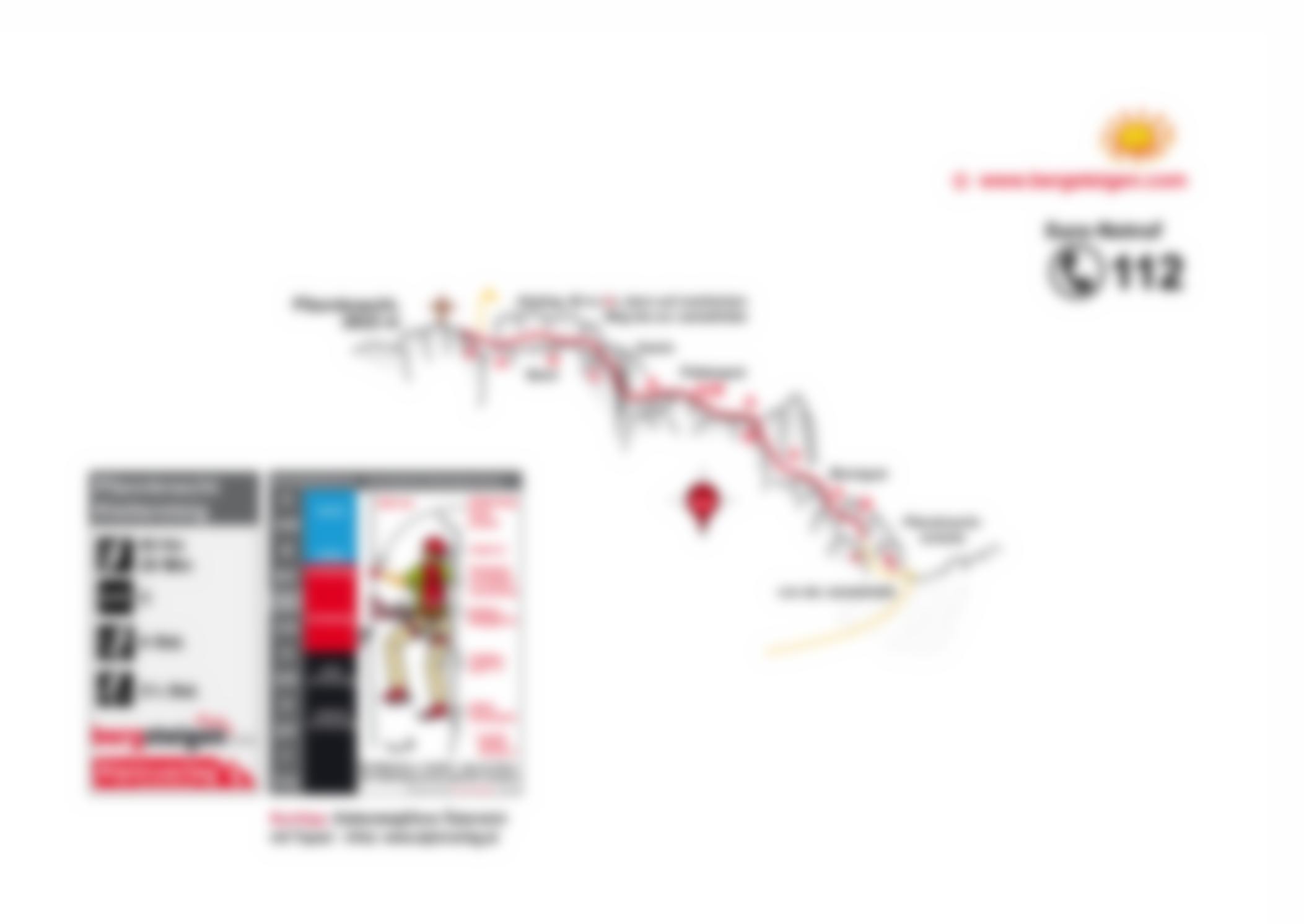 Komplette Klettersteigausrüstung und Helm, im Winter zusätzlich Skitourenausrüstung mit LVS-Gerät, Schaufel und Lawinensonde.