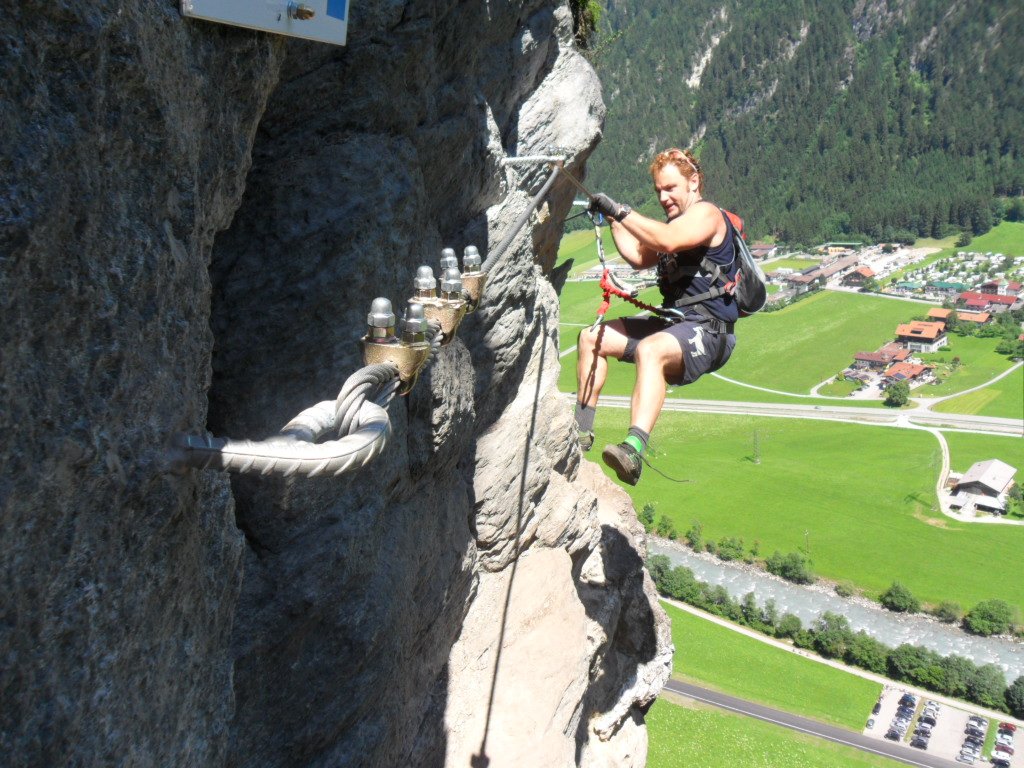 Wer nach der Einstiegswand Probleme hat, sollte die Tour rechts über den Notausstieg verlassen. Das Glockenläuten ist keine Pflichtübung (Variante, die nicht geklettert werden muss). Die Klettersteige in Mayrhofen sind sehr stark frequentiert (immer mit Helm!) und an schönen Tagen kommt es zu Staus; auch das Parken kann zum Problem werden.
