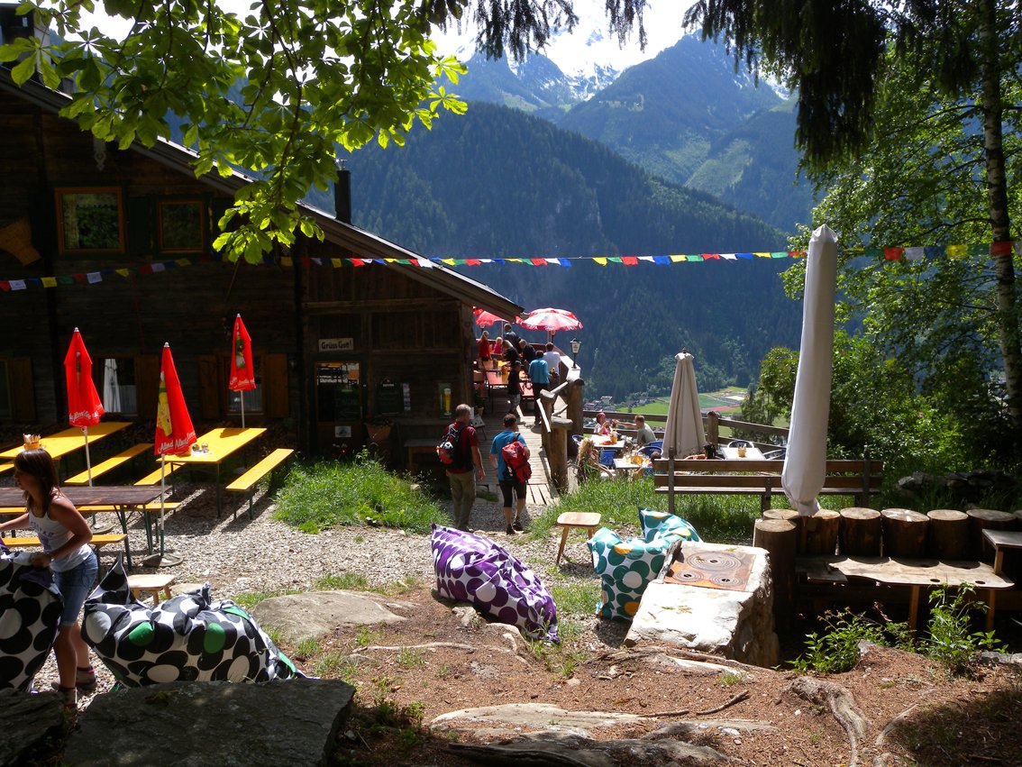 Vom Ausstieg folgt man einem Steig hinunter zum Gasthaus Zimmereben. Am Wildgehege vorbei links halten und auf einem Steig (dieser verläuft genau zwischen dem Huterlaner- und Zimmereben-Klettersteig hinunter) zurück zum Ausgangspunkt.