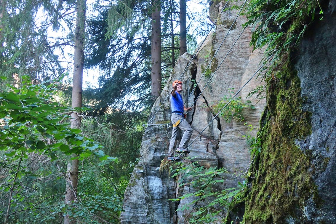 Der Klettersteig liegt schattig im Buschwald - nach Regenfällen bzw. im Frühjahr bzw. Herbst eher feucht.