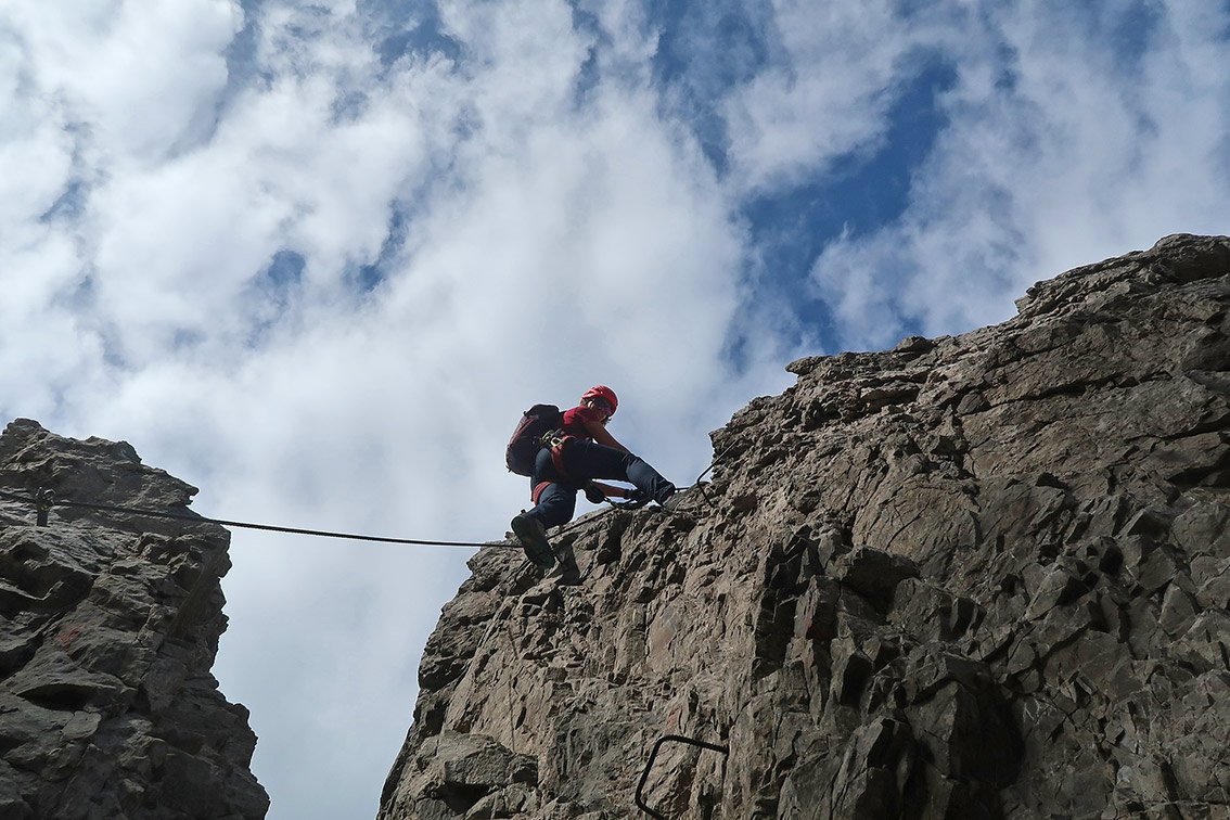 Die Piccola Ferrata ist ein aussichtsreicher, leichter Grat-Klettersteig, mit dem man die unangenehme Rinne des Rudl Eller-Weges (Steiges) großteils umgehen kann. Der Klettersteig ist lohnend, wird gerne beim Zustieg zum Laserz-Klettersteig oder zur Karlsbaderhütte mit eingebaut.