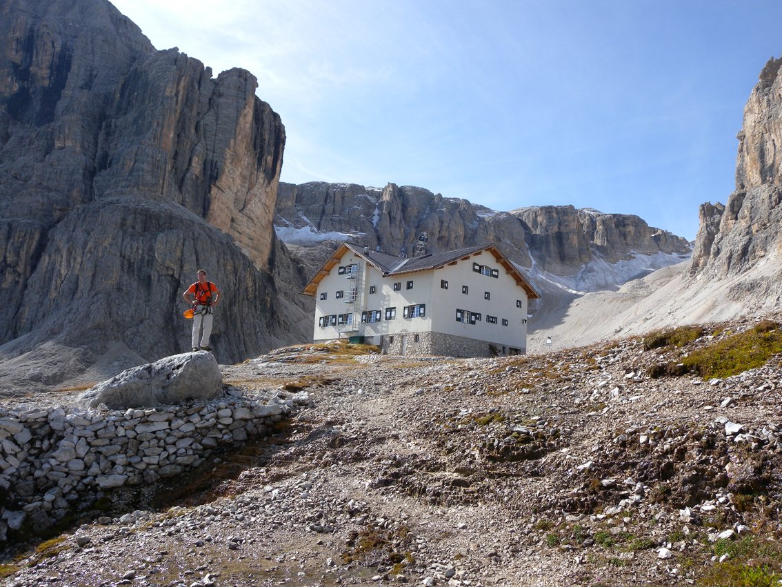 Tipp: Gipfelabstecher auf die Cima Pisciadù: Von der Hütte (Wegweiser) Weg 666 ca. 900 m nach Süden ins Val de Tita aufsteigen und beim Wegweiser links auf den Gipfel steigen (leichte Kletterstellen I; plus 2½ Std. Hütte-Gipfel-Hütte). Konditionstiger verlängern die Tour zum Piz Boe, 3152 m, und steigen auf dem Lichtenfelserweg (Weg 672) zur Bergstation Vallon, 2518 m, ab (ca. 8 Std.; Talfahrt mit Lift und Seilbahn).
