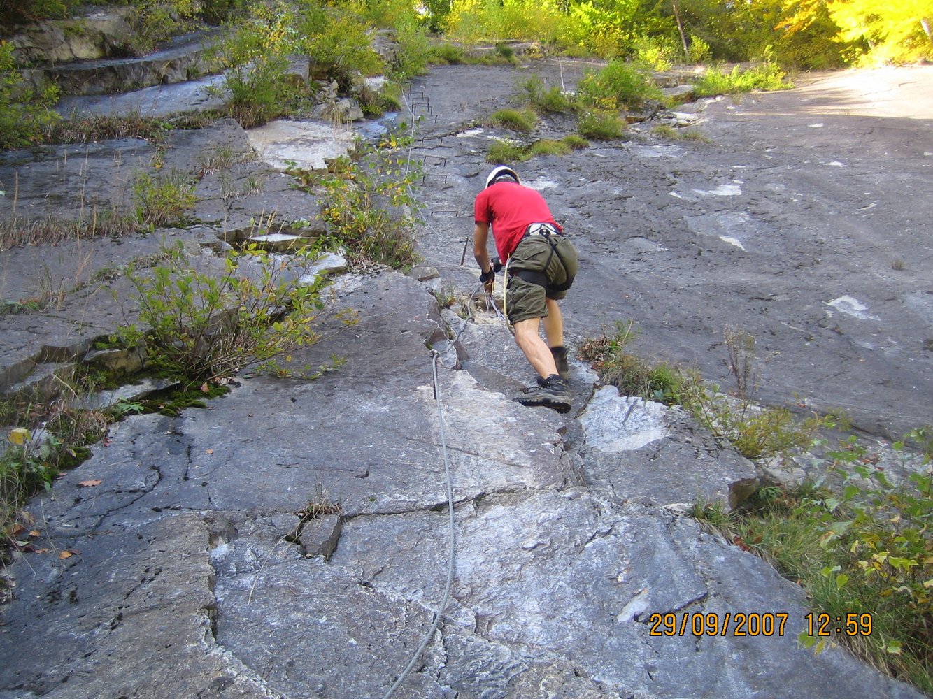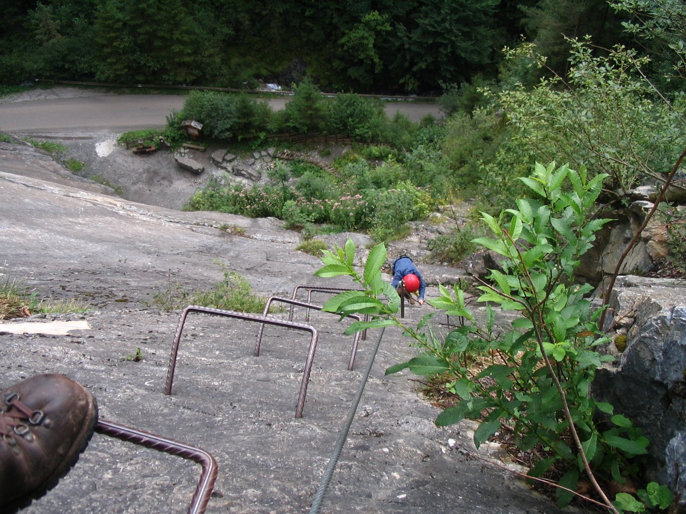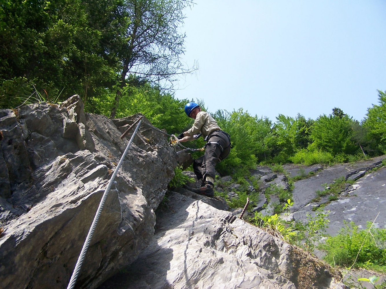 Mittel- bis schwerer Klettersteig, der mit C bewertet ist. Die C-Stellen bilden glatte geneigte Platten, die nur mit einem Sicherungsseil versehen sind. Der Ausstieg ist auch unangenehm. Bei Nässe sollte man den Steig nicht begehen!