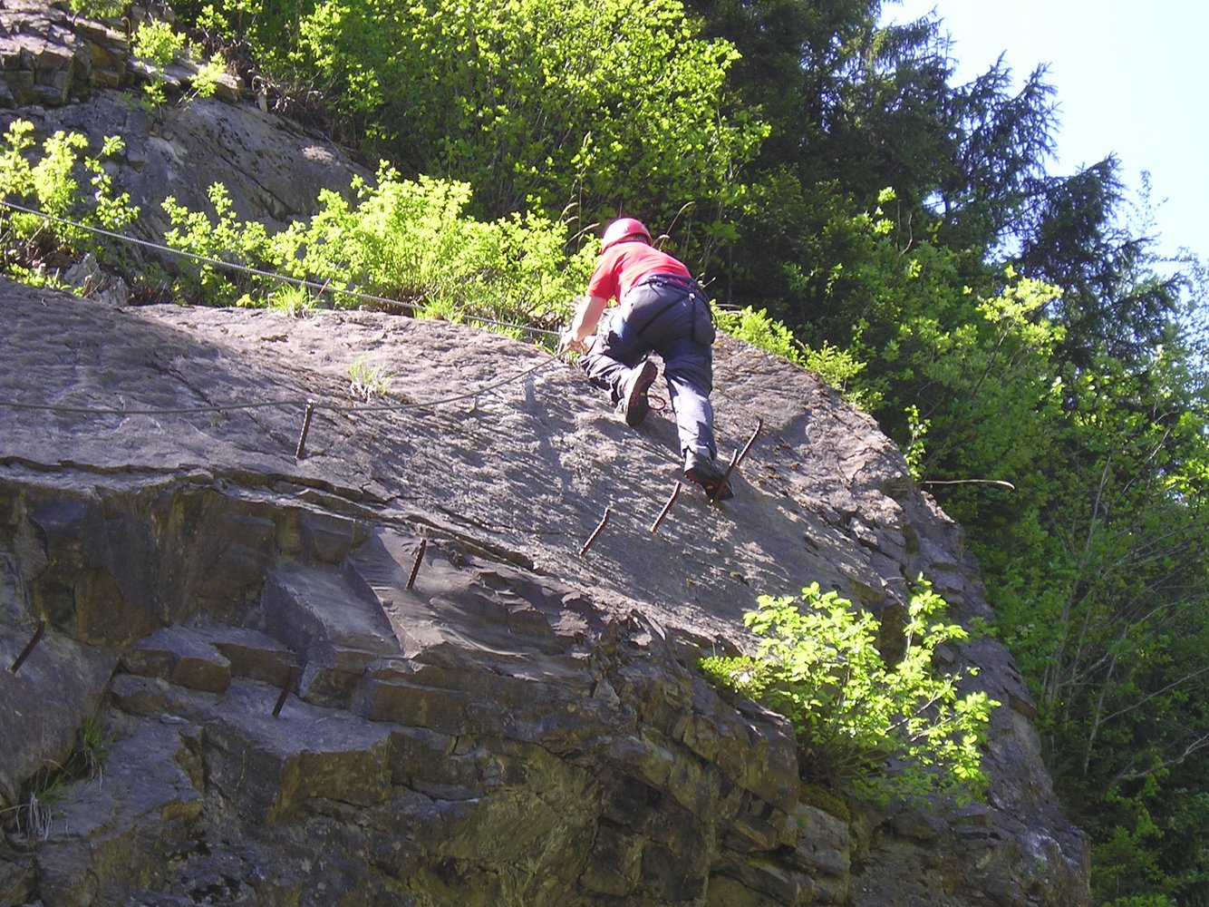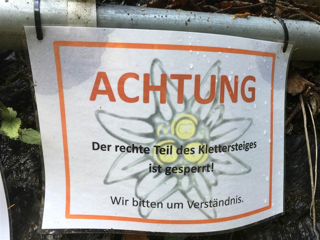 Vom 1. November bis 30. April herrscht Wintersperre. Länge Klettersteig: 250 m