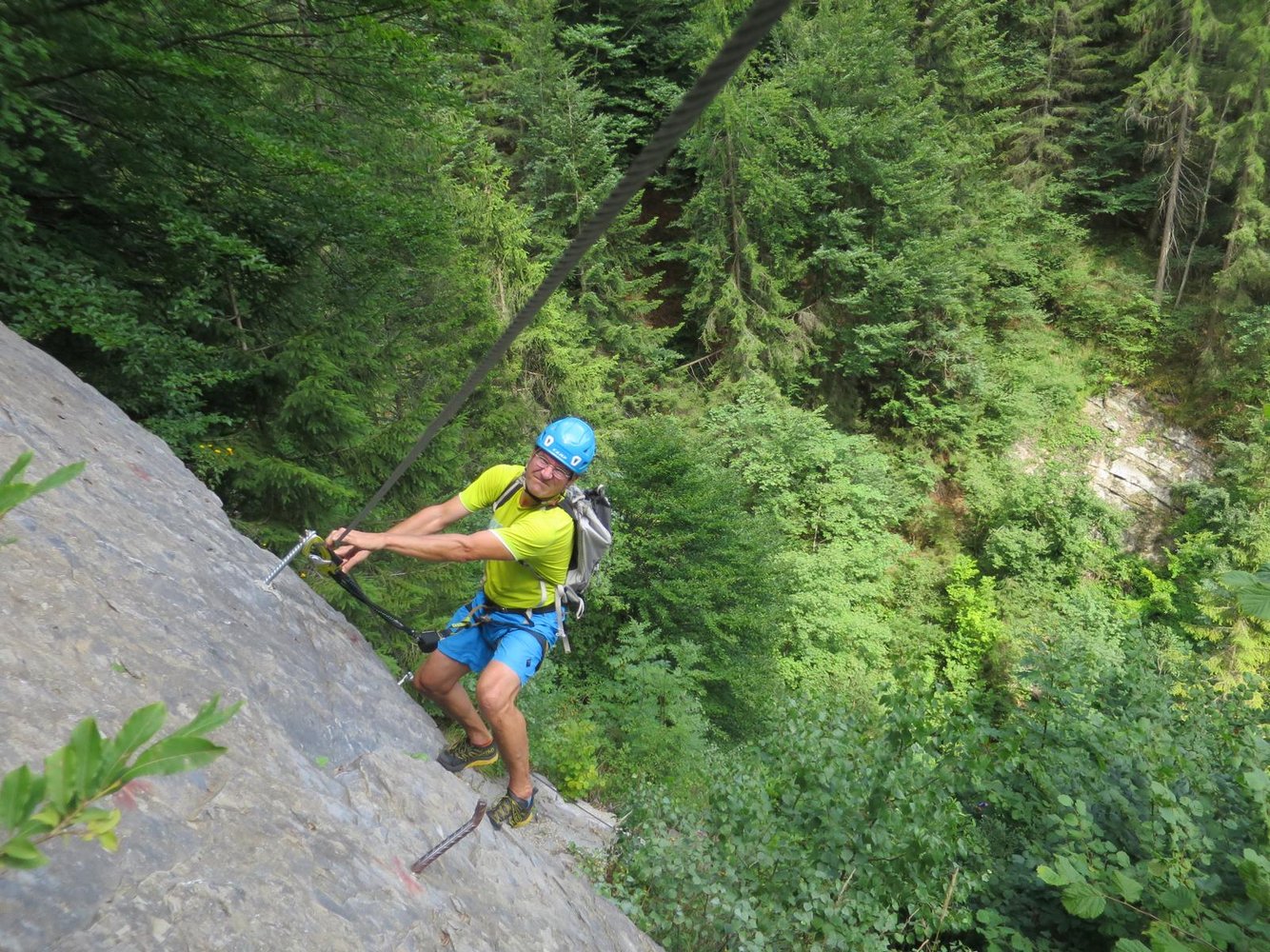 Wie Aufstieg über den Klettersteig (Rundkurs bzw. Rundklettersteig).