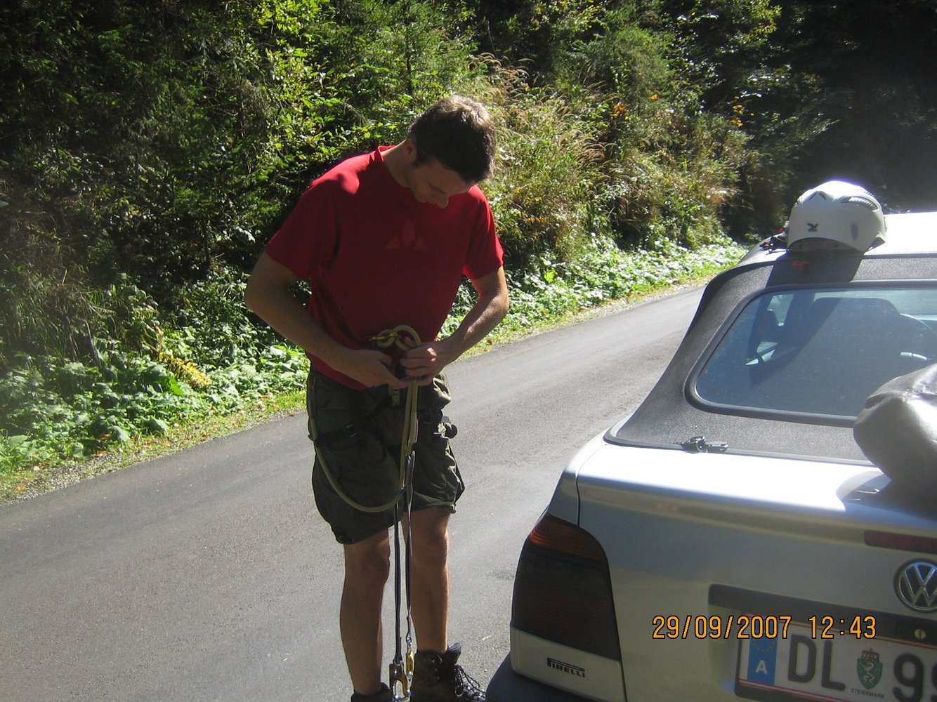 Vom Parkplatz 100 Meter der Straße in den Klammgraben folgen und links zum Einstieg bei Tafelsn.