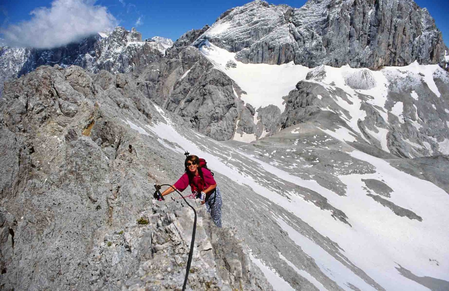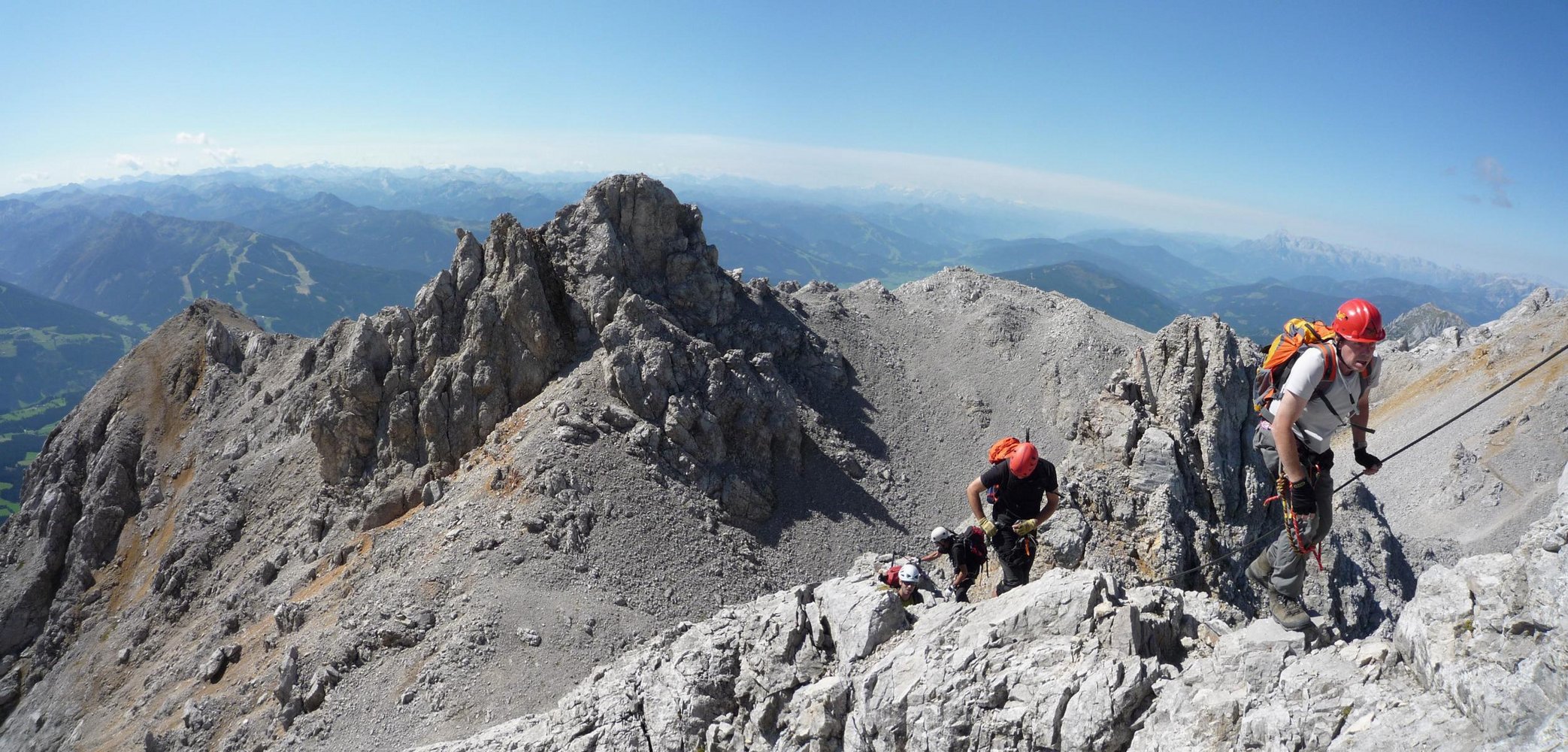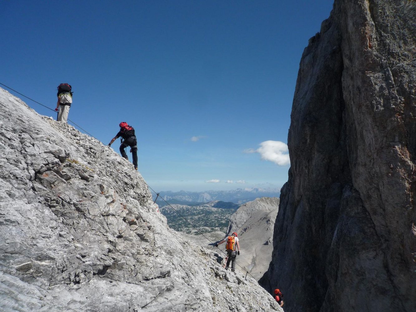Tipp: Als ideale Basis für den Ramsauer Klettersteig bietet sich das Guttenberghaus an. Von dort erreicht man den Einstieg auf der Edelgrieshöhe in 2 Std und ist, von der Gruberscharte oder dem Eselstein in rd. 30 Min. wieder bei der Hütte, in deren Umkreis es noch vier weitere Klettersteige gibt.