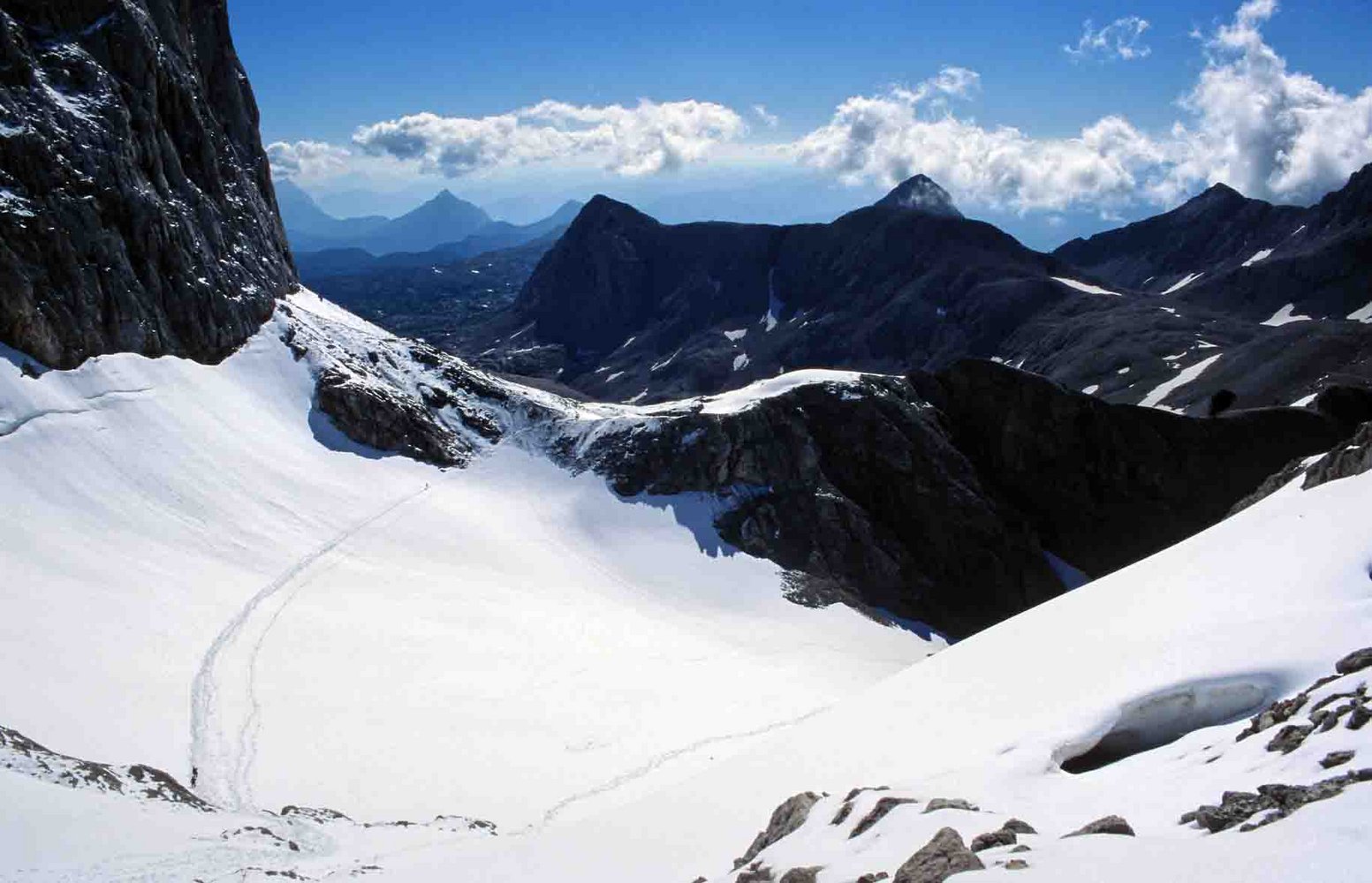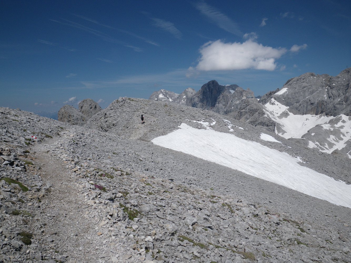 Von der Gruberscharte auf dem Wanderweg zurück zur Edelgrießhöhe und durch den Rosmarie Stollen zur Bergstation der Südwandbahn.