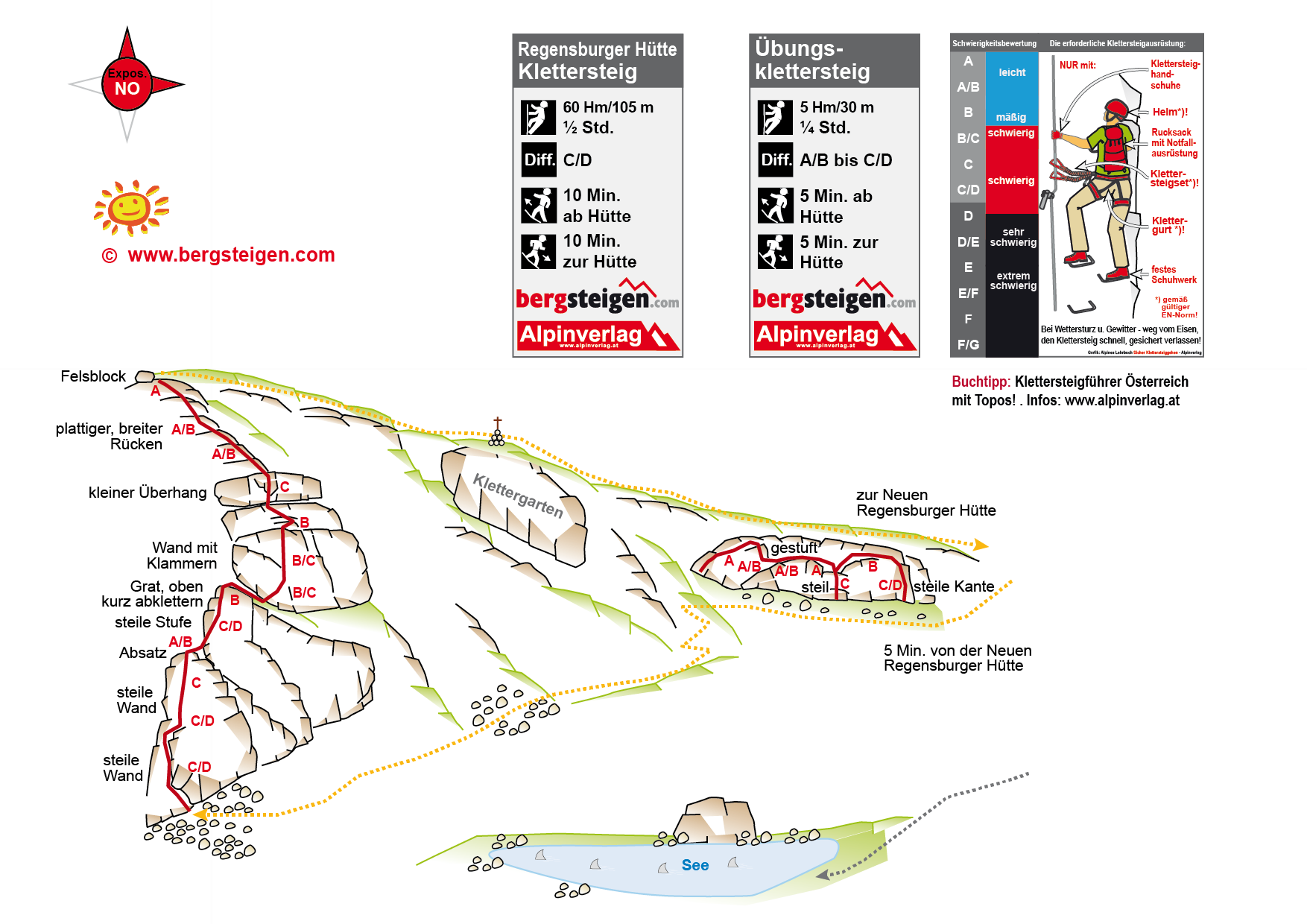 Übungsklettersteig A/B bis C/D, Regensburger Hütte Klettersteig C/D.