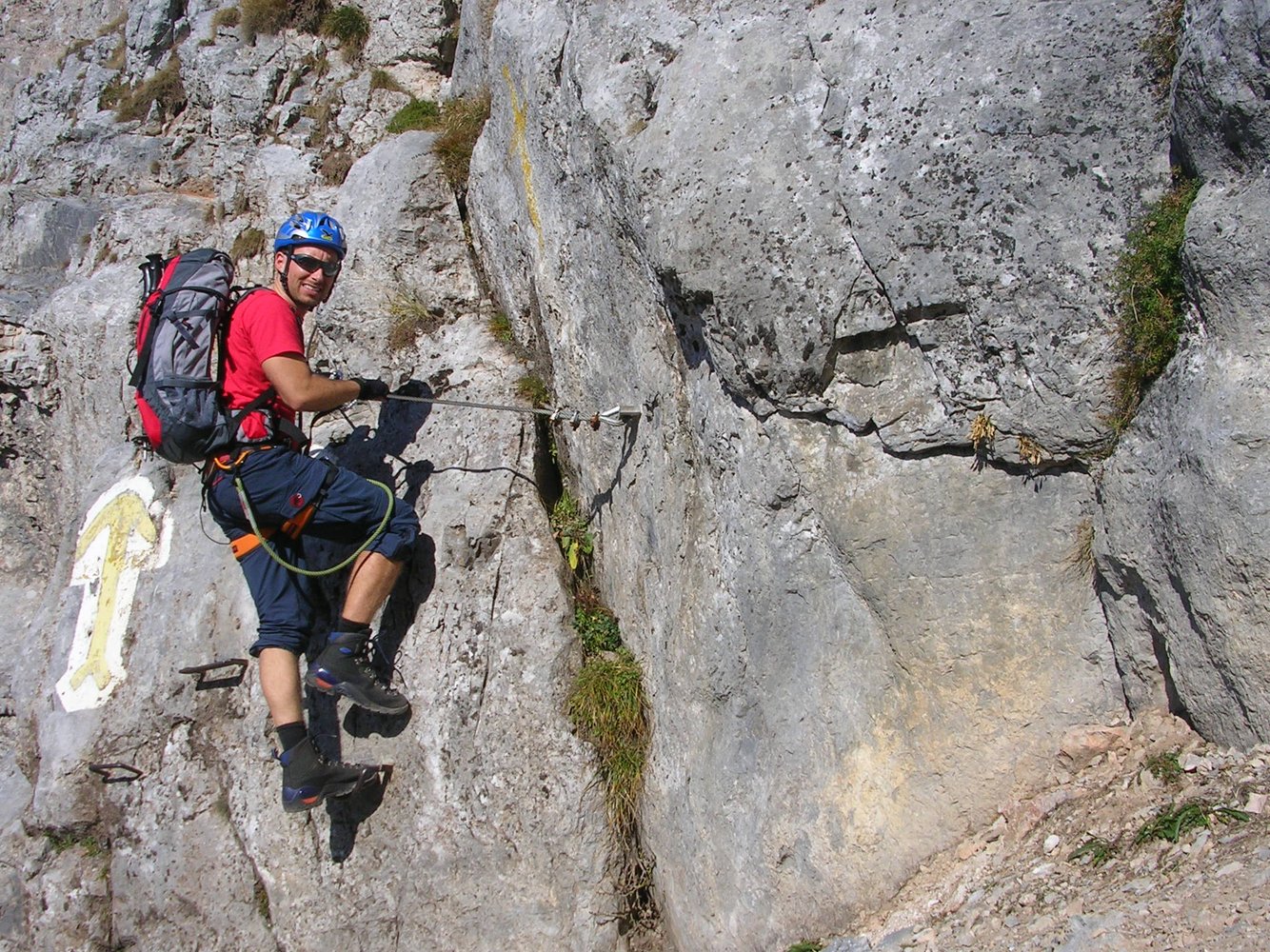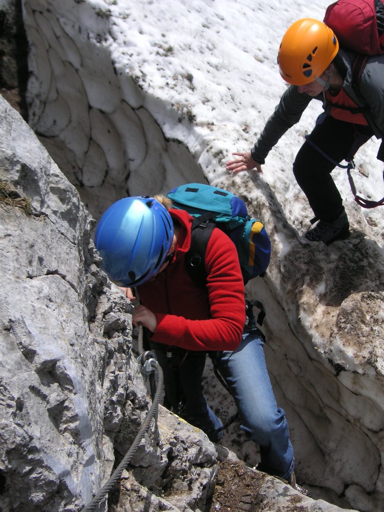 Eventuell einen Helm; nur für Anfänger und Kinder ist eine komplette Klettersteigausrüstung nötig.