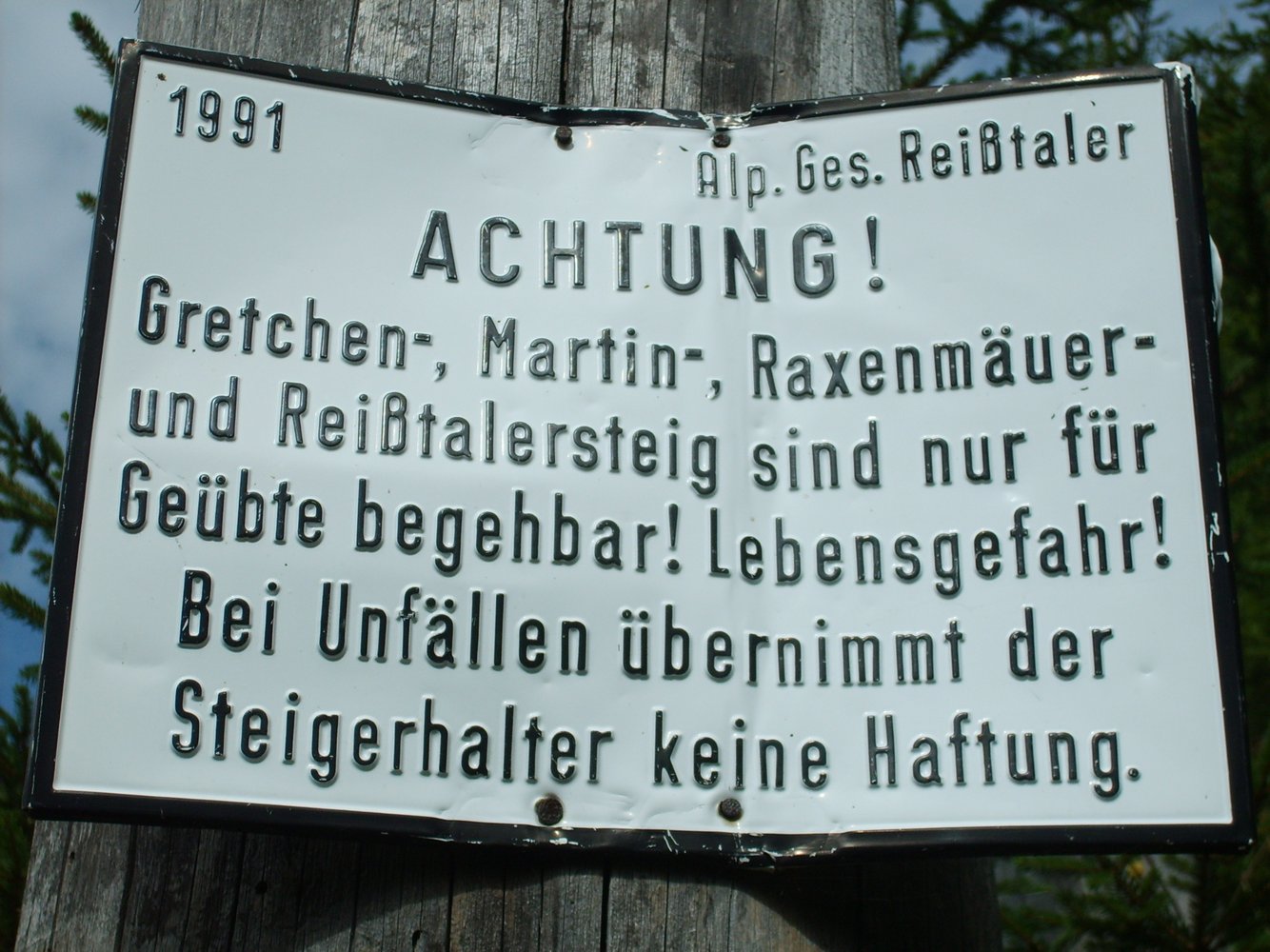 Der Reißtalersteig ist der bekannteste Klettersteig in den Raxenmäuern. Ein sehr schöner Anfängersteig mit etwas ausgesetzer Eisenleiter. Für Kinder (evt. Seilsicherung) und Anfänger zu empfehlen.