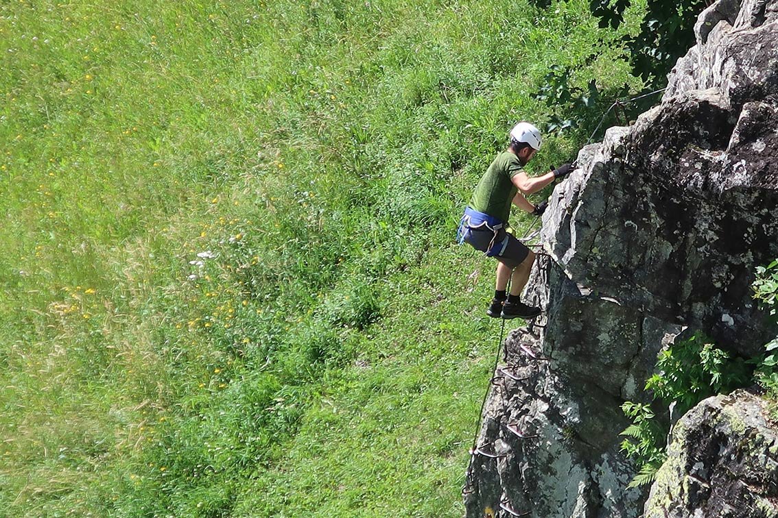 Übungsklettersteig in einem schön gelegenen Rifa-Klettergarten, der sich vor allem zum Training und für Kurse eignet. Es gibt verschiedene Varianten und eine Seilbrücke. Das Areal um den Klettergarten ist sehr schön gestaltet, neben dem Klettergarten gibt es eine Blockhütte, ein Wasserspiel und eine Grillstelle, also auch für Familien sehr gut geeignet. Wenn das Wetter etwas unsicher ist, ist der Rifa Klettersteig eine gute Gelegenheit, doch etwas in der Vertikalen zu machen.