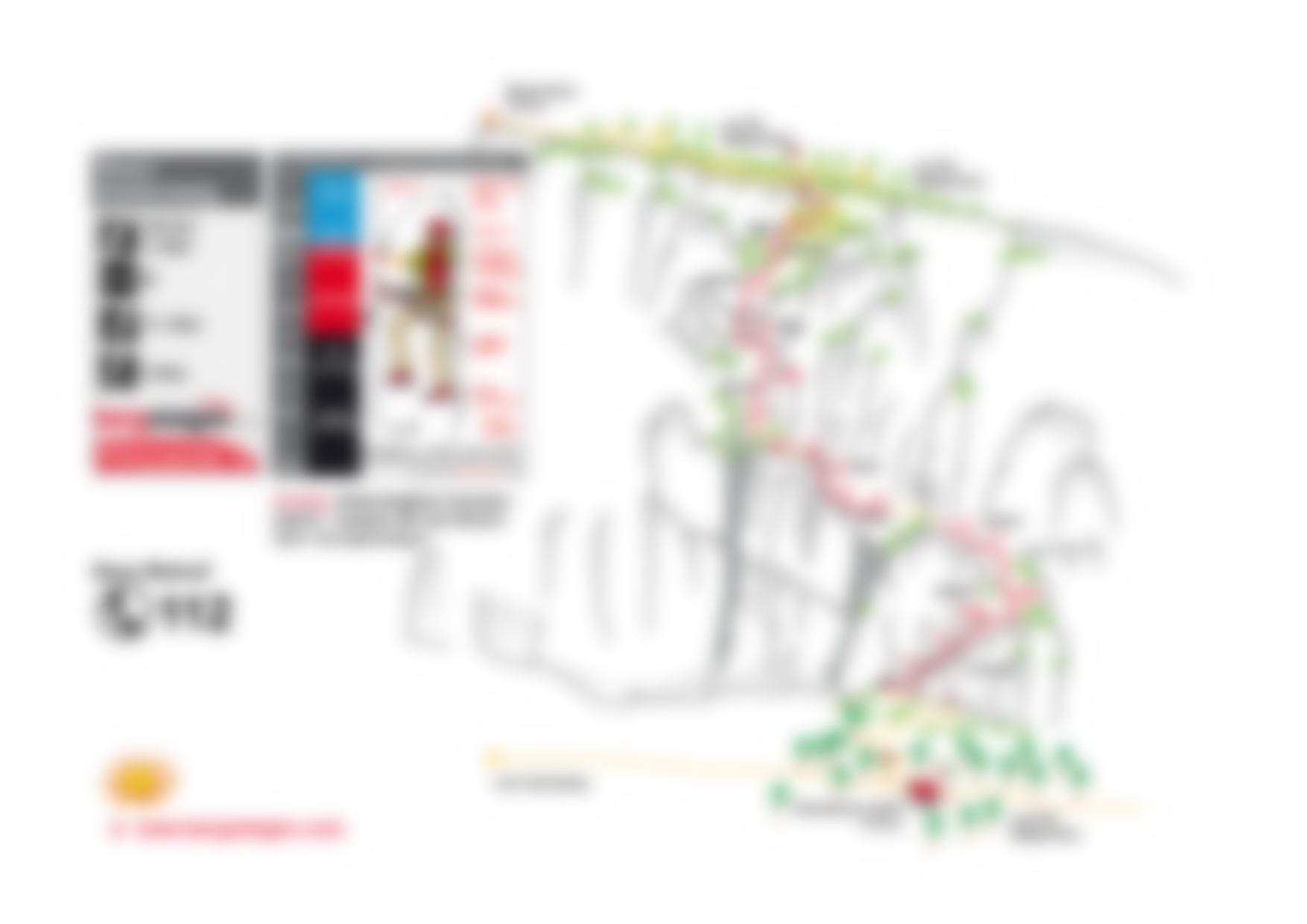 Siehe Topo. Der Steig verläuft meist auf Rampen, Bändern und in Rinnen, die Schlüsselstelle ist eine kurze Stufe im Mittelteil.