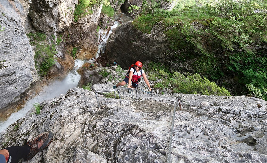 Achtung: Der Rongg-Wasserfall-Klettersteig ist deutlich anspruchsvoller als der Röbischlucht Klettersteig.