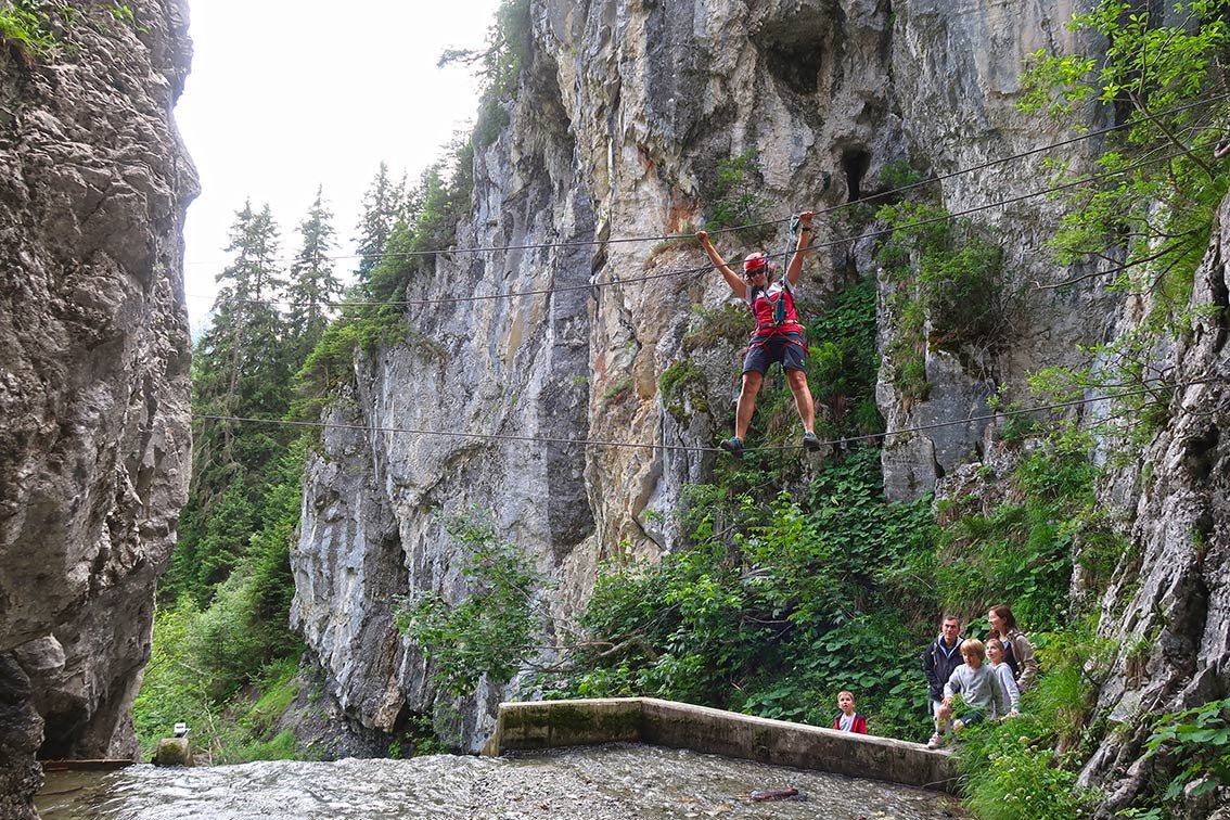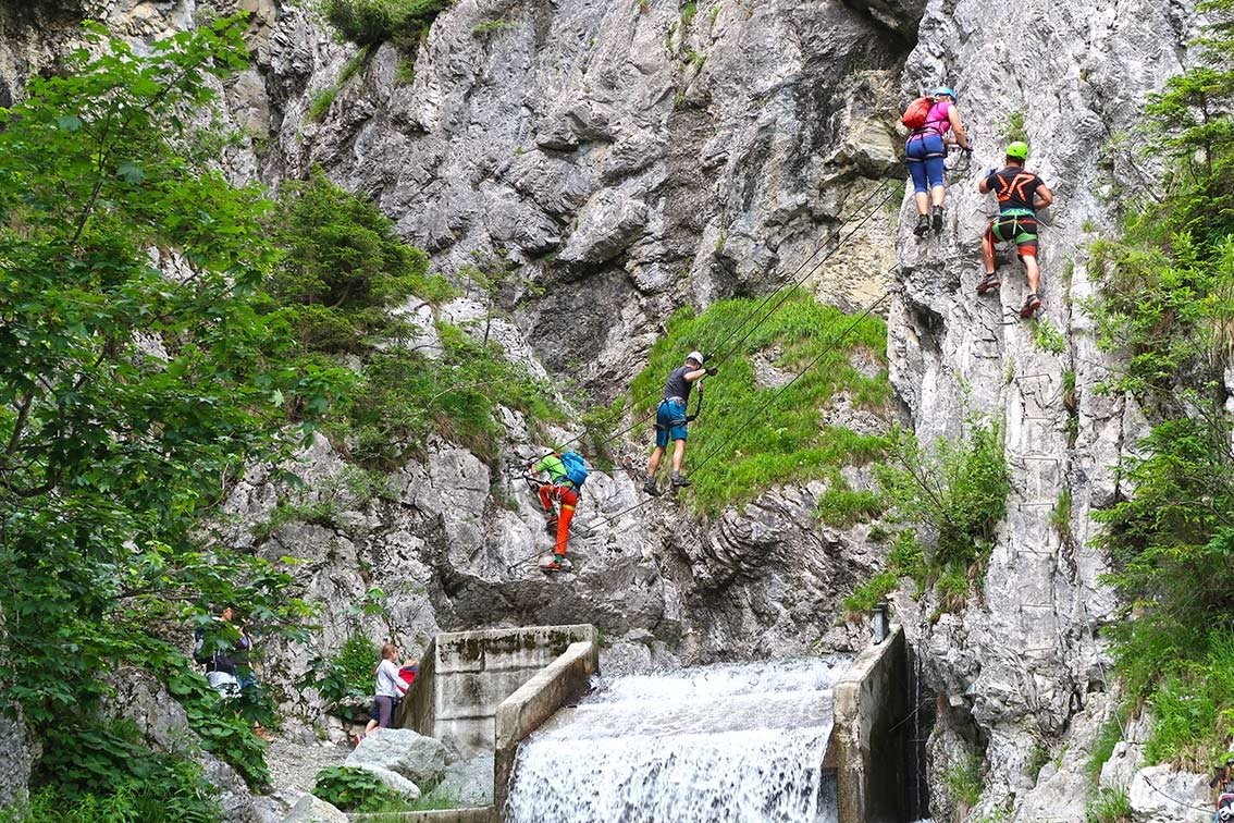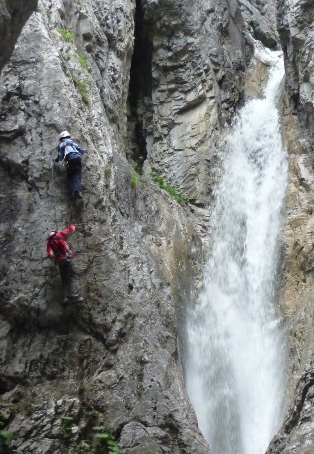 Der Klettersteig kann gut mit dem jeweils daneben liegenden Schluchtklettersteig kombiniert werden (siehe Topo). Bitte aber nicht über die Klettersteige absteigen (Gegenverkehrsproblematik).