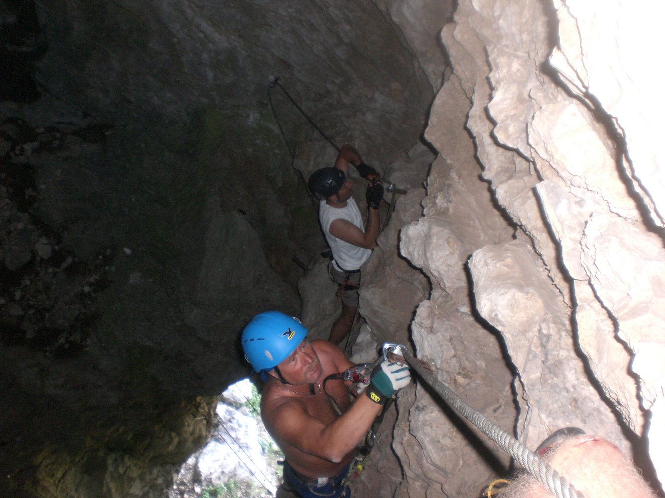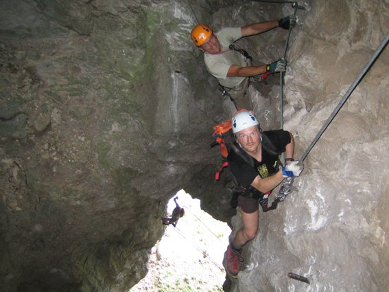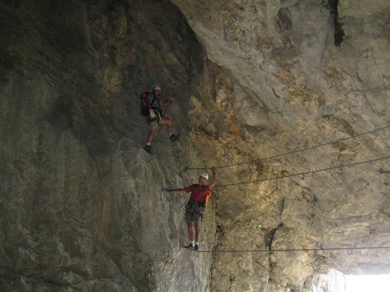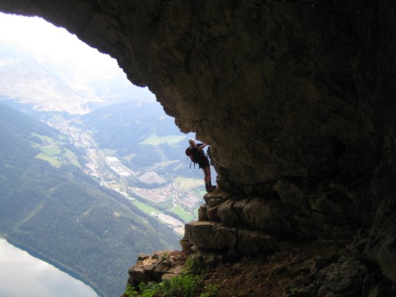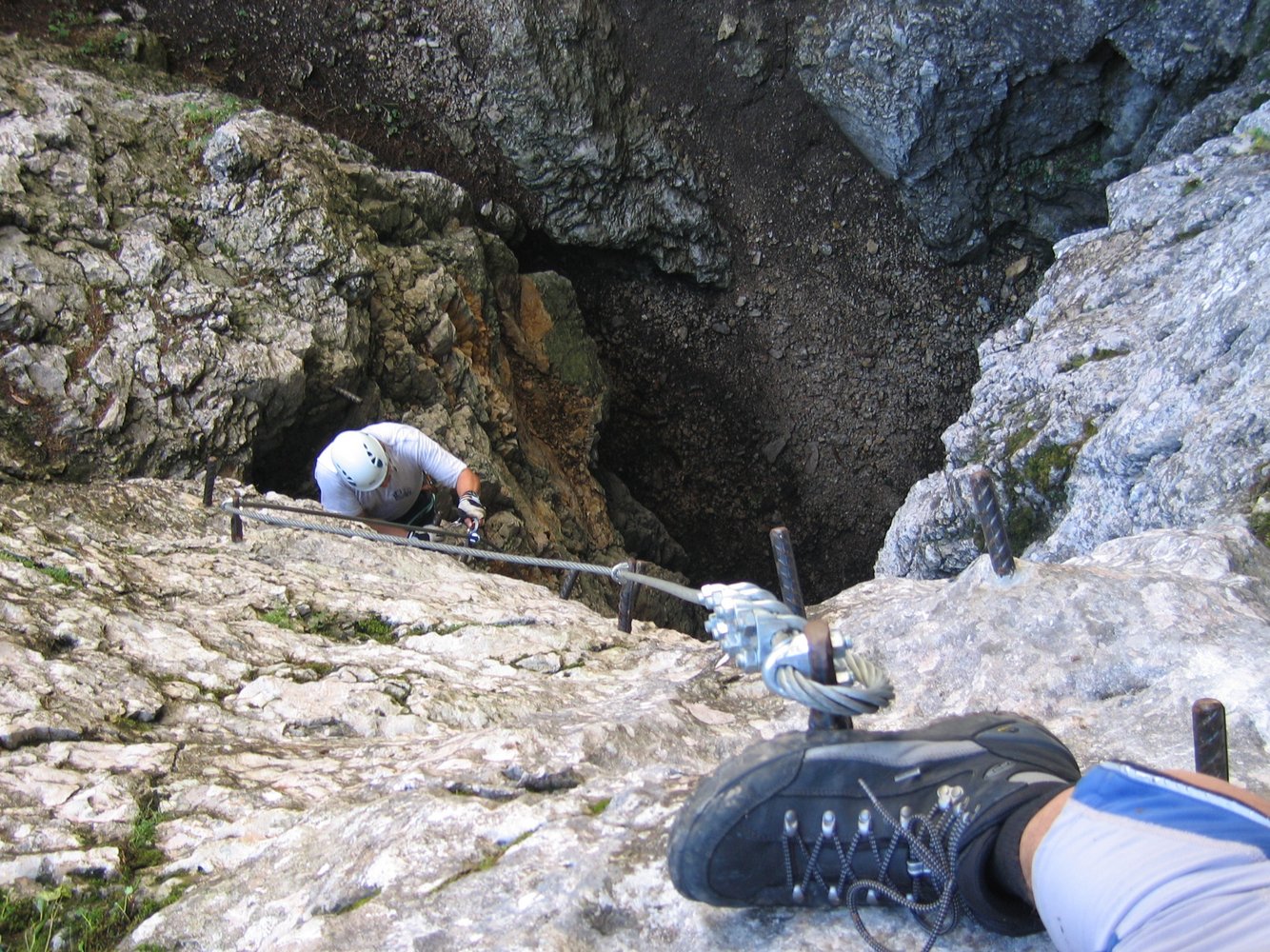 Wer nach dem Kaiser-Franz-Joseph-Klettersteig keine Kraft mehr hat, soll nicht hinunter zur Höhle klettern (unten gibt es keine Fluchtmöglichkeit, man muss also auf jeden Fall wieder aufsteigen und die Klettersteigpassagen sind deutlich schwerer als beim Kaiser-Franz-Joseph-Klettersteig !!!)