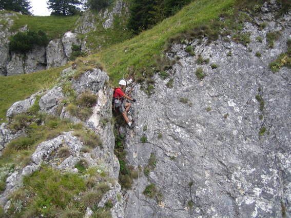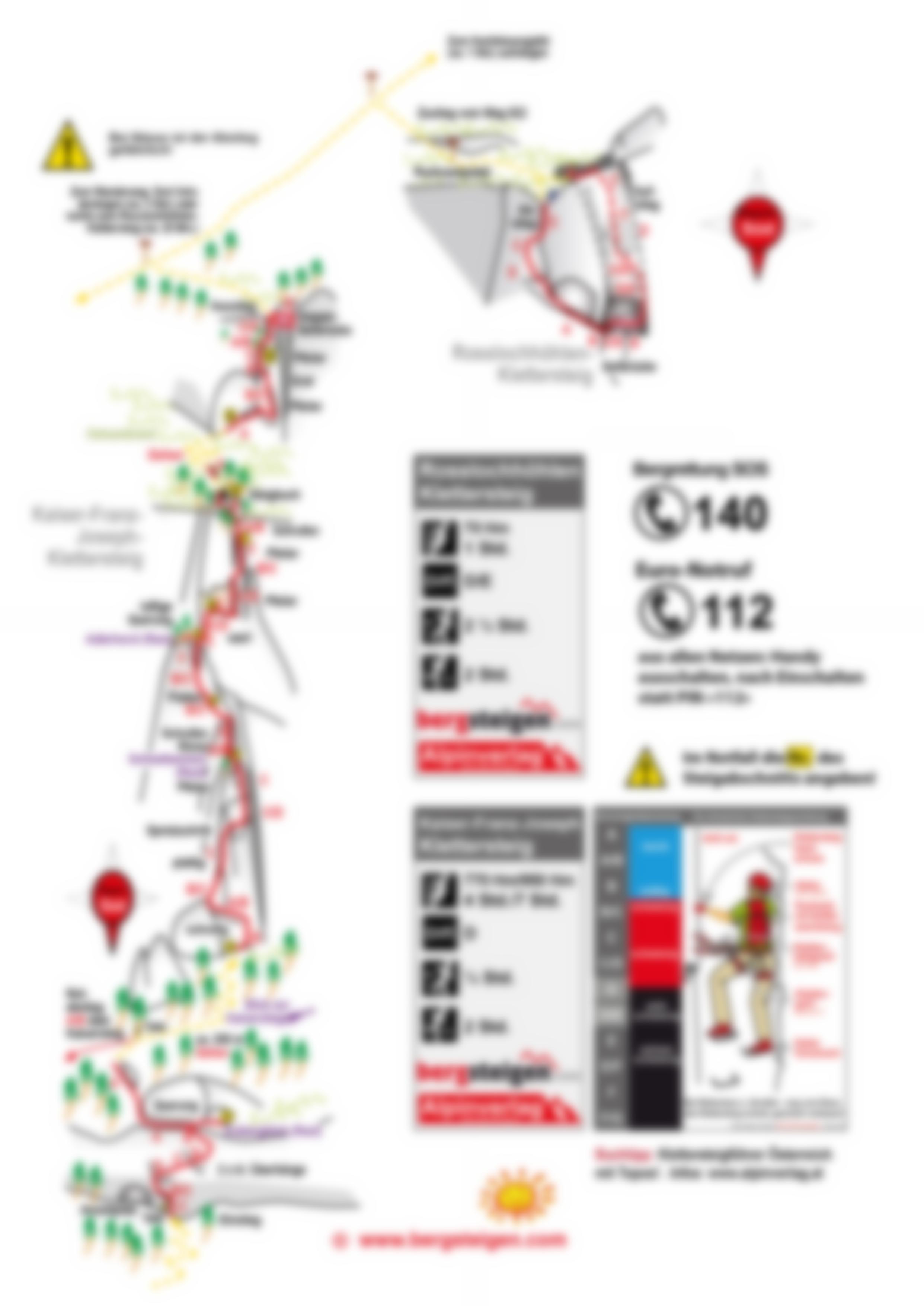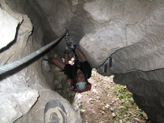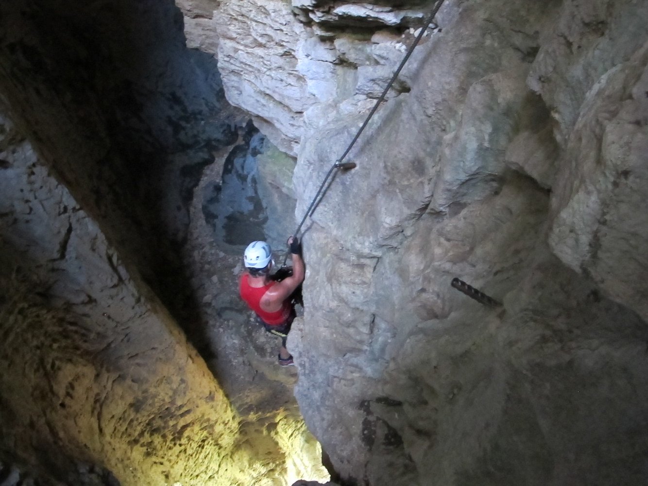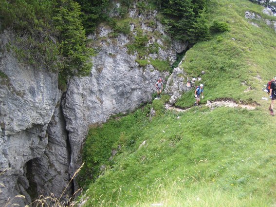 Wer nach dem Kaiser-Franz-Joseph-Klettersteig keine Kraft mehr hat, soll nicht hinunter zur Höhle klettern (unten gibt es keine Fluchtmöglichkeit, man muss also auf jeden Fall wieder aufsteigen und die Klettersteigpassagen sind deutlich schwerer als beim Kaiser-Franz-Joseph-Klettersteig !!!)