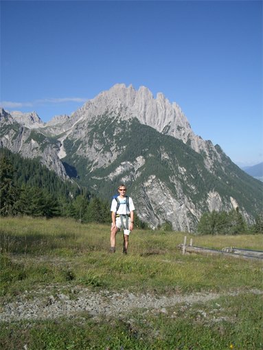 Oberhalb der Kühalm beginnen die Versicherungen (max. A/B), welche zum Teil steinschlaggefährdet ins Hohe Törl (2233 m) leiten. Von dort kurz absteigen und weiter auf Gehweg zur Karlsbader Hütte.