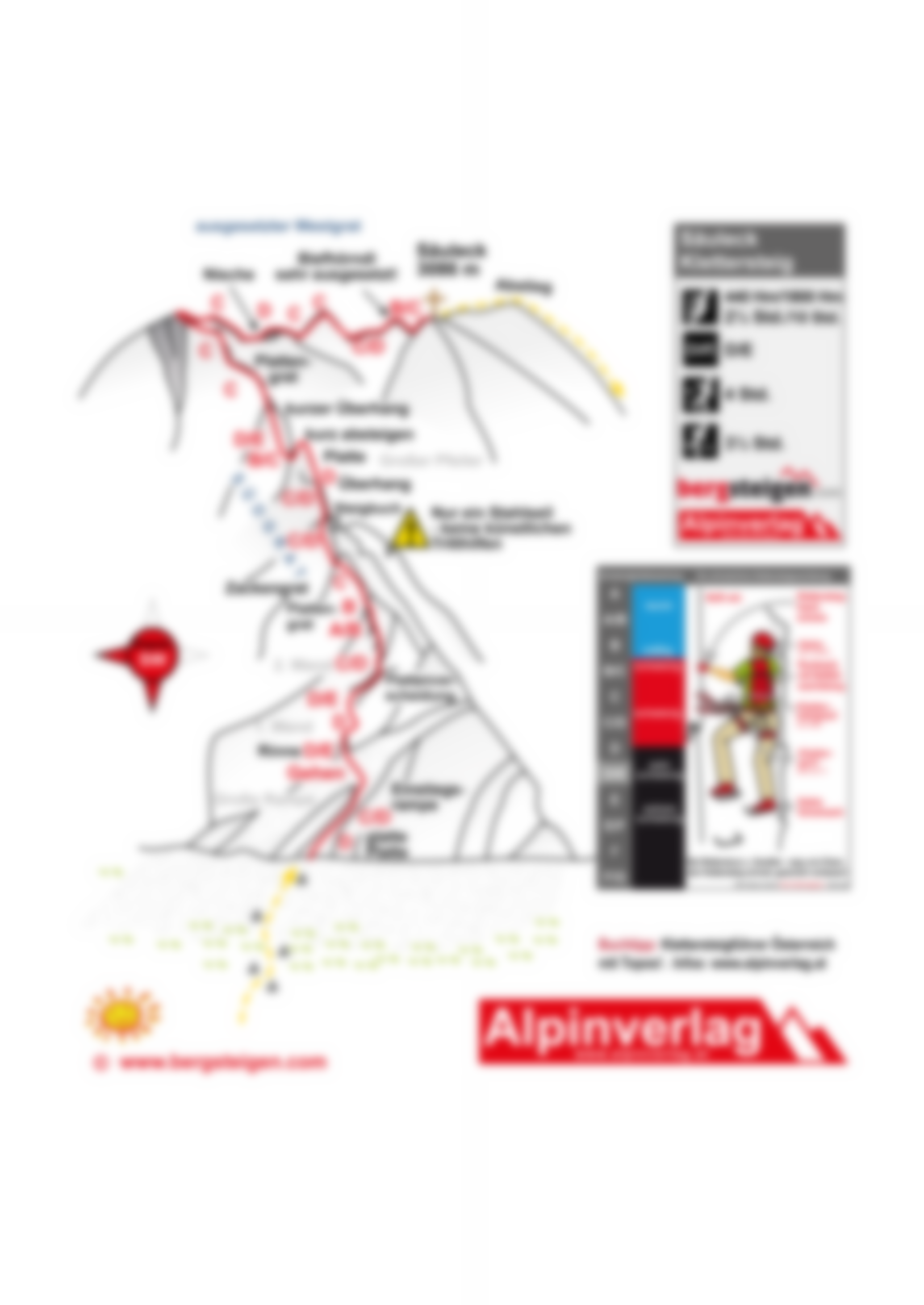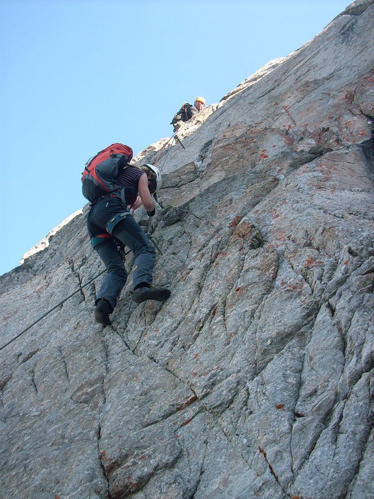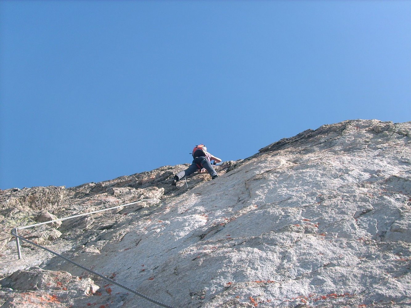 Komplette Klettersteigausrüstung und Helm. Für schwächere Kletterer eventuell 30 m Seil zum Nachsichern.