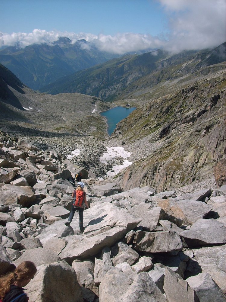 Über den Normalweg hinunter in den Bereich des Grazer Schartls, später wieder auf dem Zustiegsweg, hinunter zum Arthur-von-Schmid-Haus. Alternativ kann man vom Grazer Schartl in Richtung Mallnitzer Scharte gehen und unterhalb dieser über den sog. Block-Gletscher absteigen. Man geht dort über Felsblöcke unter denen sich ein Gletscher befindet.