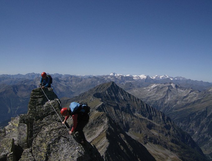 Naturnaher, 2007 eröffneter Klettersteig auf das mächtige Säuleck. Der Steig verläuft fast immer über einen zackigen Grat und hat zahlreiche anregende Kletterpassagen. Beim Bau wurde aus Naturschutzgründen auf Trittstifte und Klammern verzichtet. Auf den ausgesetzten Gratpassagen ist somit eine gute Fußtechnik gefragt. Traumhafter Blick zu den Gipfel der Hohen Tauern!
