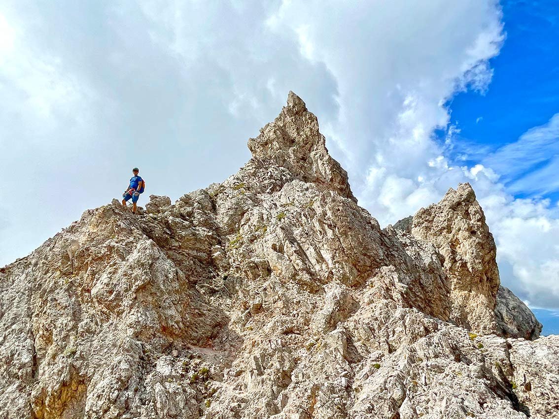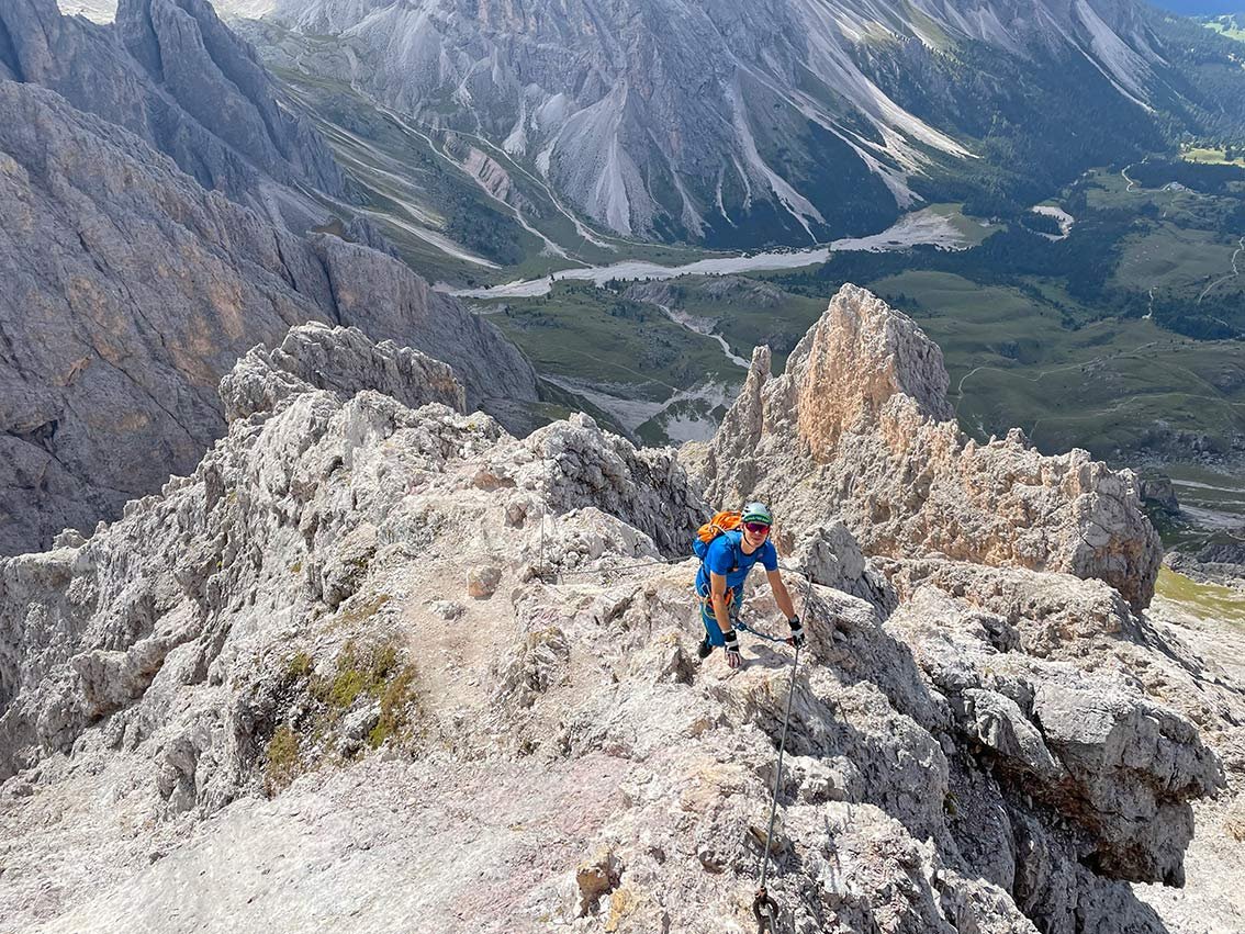 Eindrucksvolle Überschreitung des zweithöchsten Gipfels der Geisler-Puez Gruppe, die als Bergheimat von Luis Trenker gilt. Auf dem Gipfel hat man einen grandiosen Blick auf Langkofel und die Puez Gruppe mit weiteren lohnenden Klettersteigzielen. Auf den höchsten Punkt führen gleich drei Anstiege von moderater Schwierigkeit. Wir empfehlen die Runde mit dem Ostgrat zu beginnen.