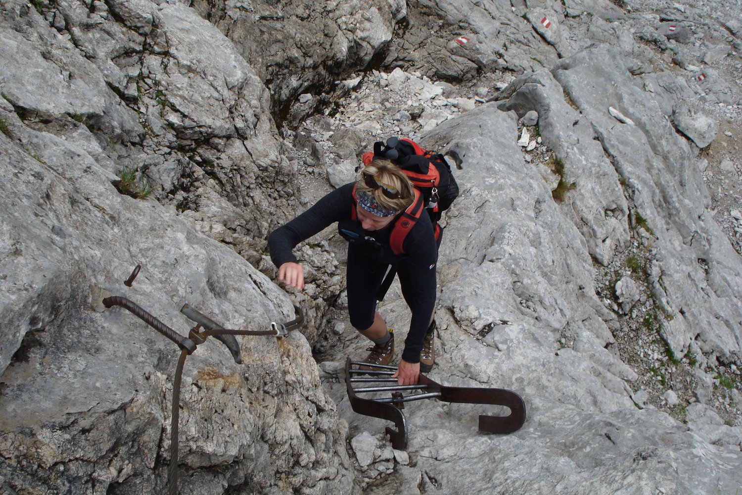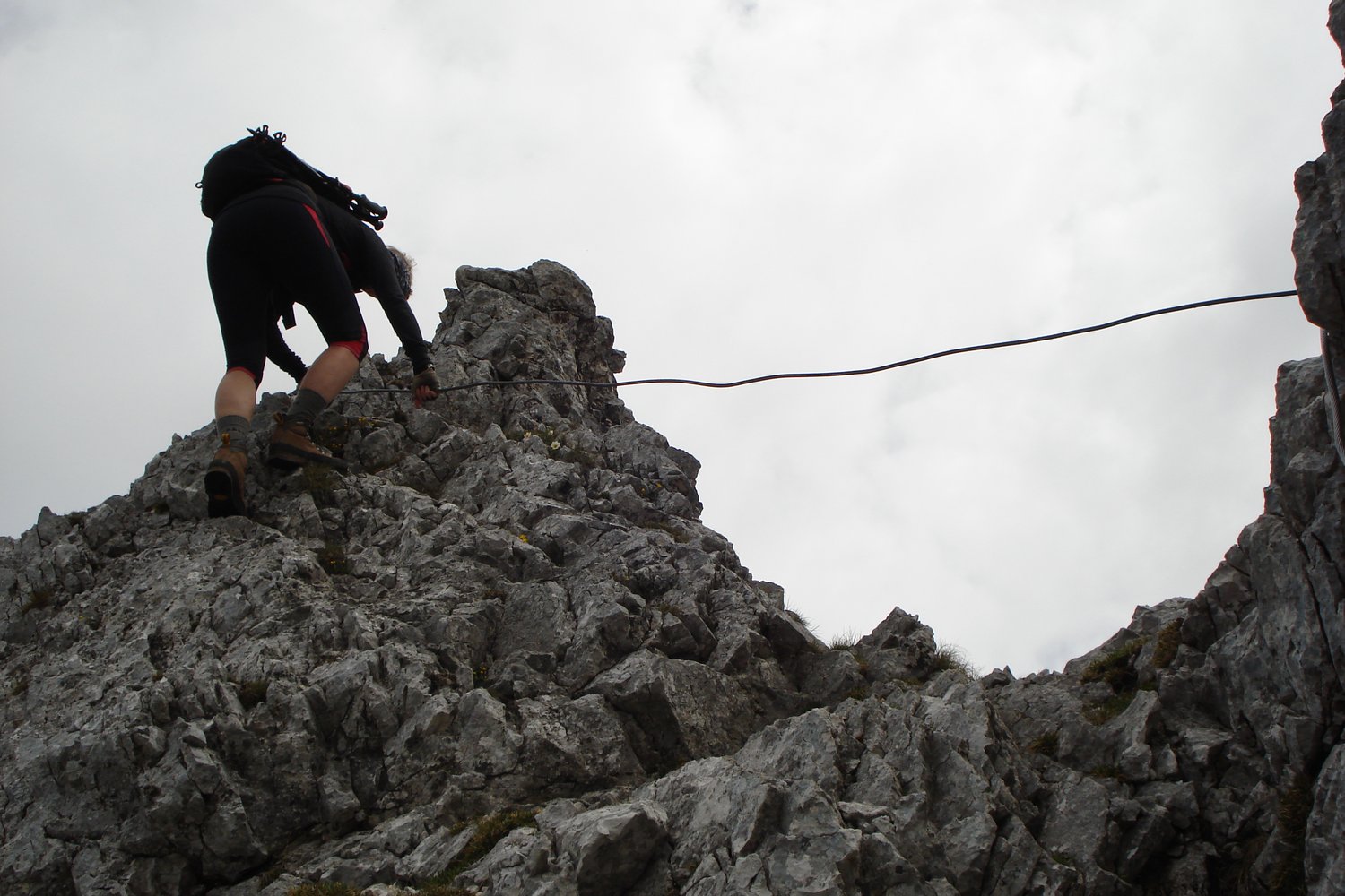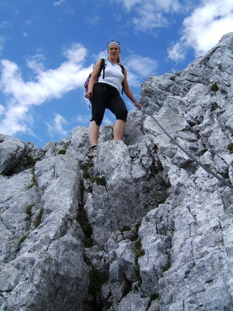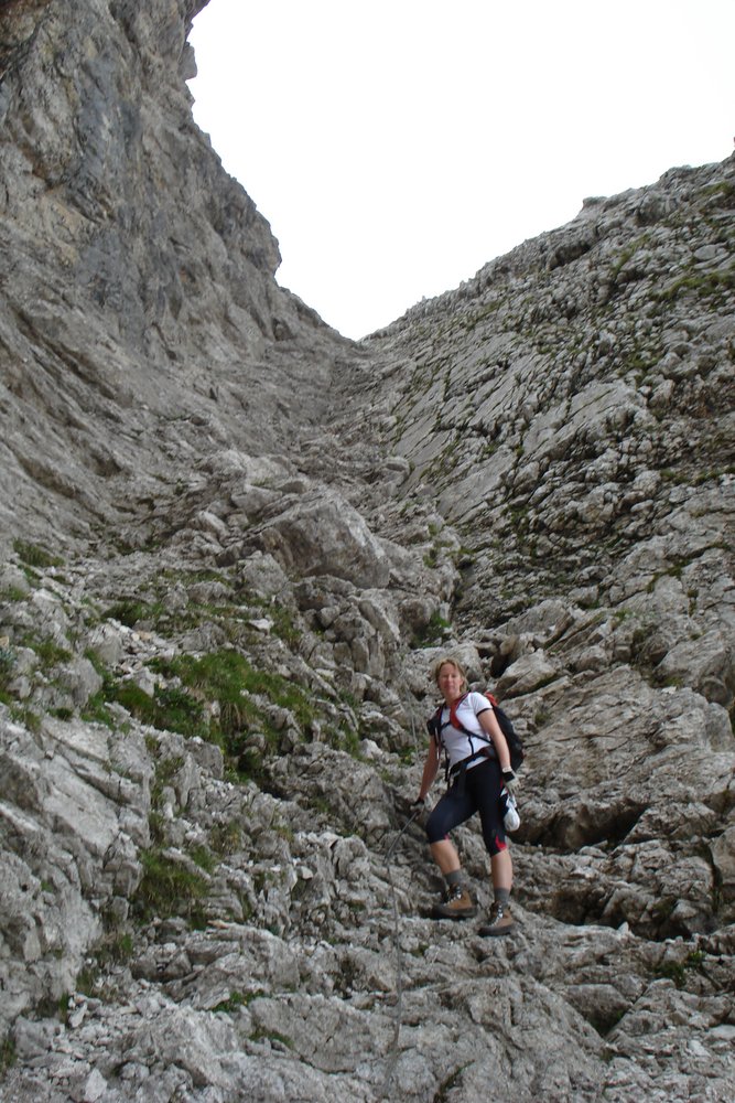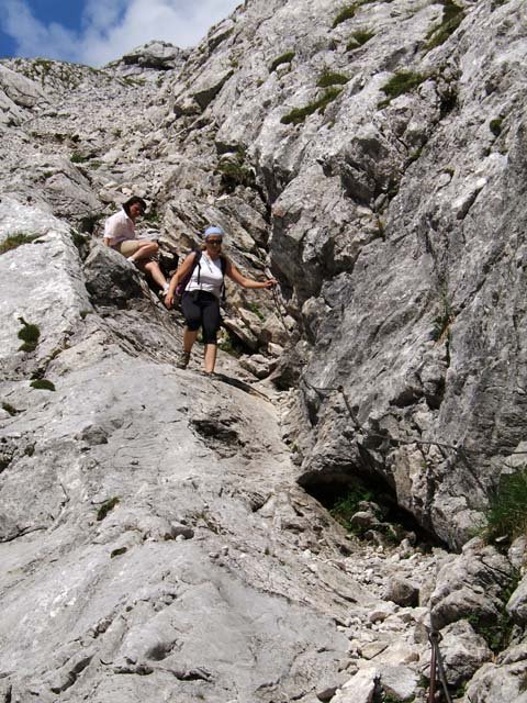 Für ungeübte und Kinder Klettersteigset bzw. kurzes Sicherungsseil.