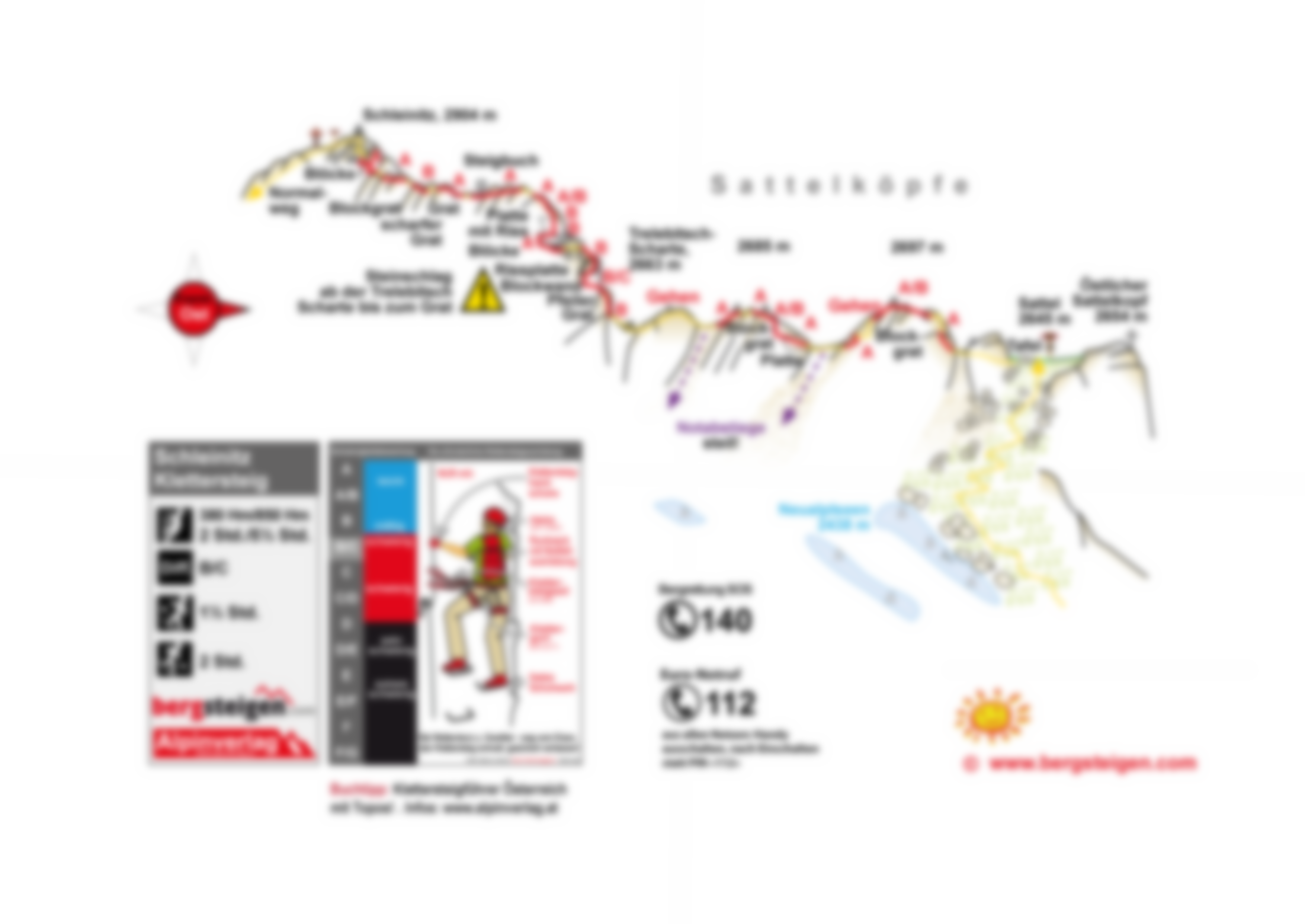 Der Steig ist blau markiert! Auf sicheres Wetter achten, da man sich immer auf dem exponierten Grat aufhält. Will man den Grat vor der letzten Steilwand verlassen, klettert man besser zu einer der beiden ersten Scharten zurück (die Trelebitschscharte ist als Fluchtweg nicht geeignet!). Im Bereich der letzten Steilwand ist auf Steinschlag zu achten. Trotz der Sanierung sollte man für dieses Unternehmen trittsicher sein - auch der Abstieg auf dem Normalweg (große Blöcke) verlangt solides Steigen.