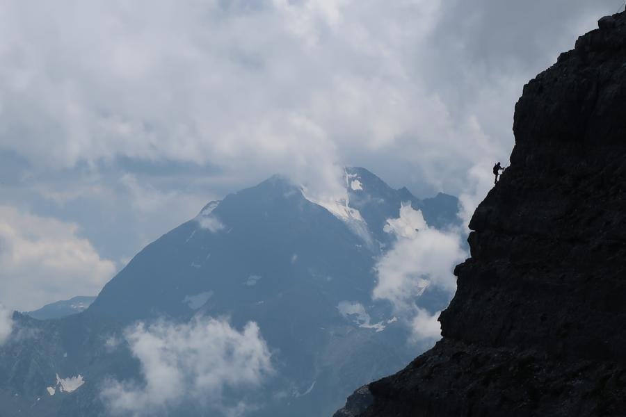 Die Route verläuft über den Südgrat der Großen Ochsenwand und ist geschickt angelegt (der Steinschlag hält sich in Grenzen). Die Schlüsselstelle ist wie bei den meisten Klettersteigen der Einstiegsüberhang - wer diesen nicht schafft oder da schon unsicher ist, der sollte lieber umkehren. Auch im restlichen Steig gibt es sehr steile Passagen aber auch Gehgelände. Ein schöner Gipfelgrat mit einem lustigen Überstieg runden das Gesamterlebnis positiv ab. Am Gipfel der Gr. Ochsenwand (2700 m) angelangt, kommt dann noch ein durchaus selektiver und langer Abstieg über den Nordgrat. Auch dieser ist gut versichert und ist sogar als eigene Klettersteigunternehmung zu empfehlen.