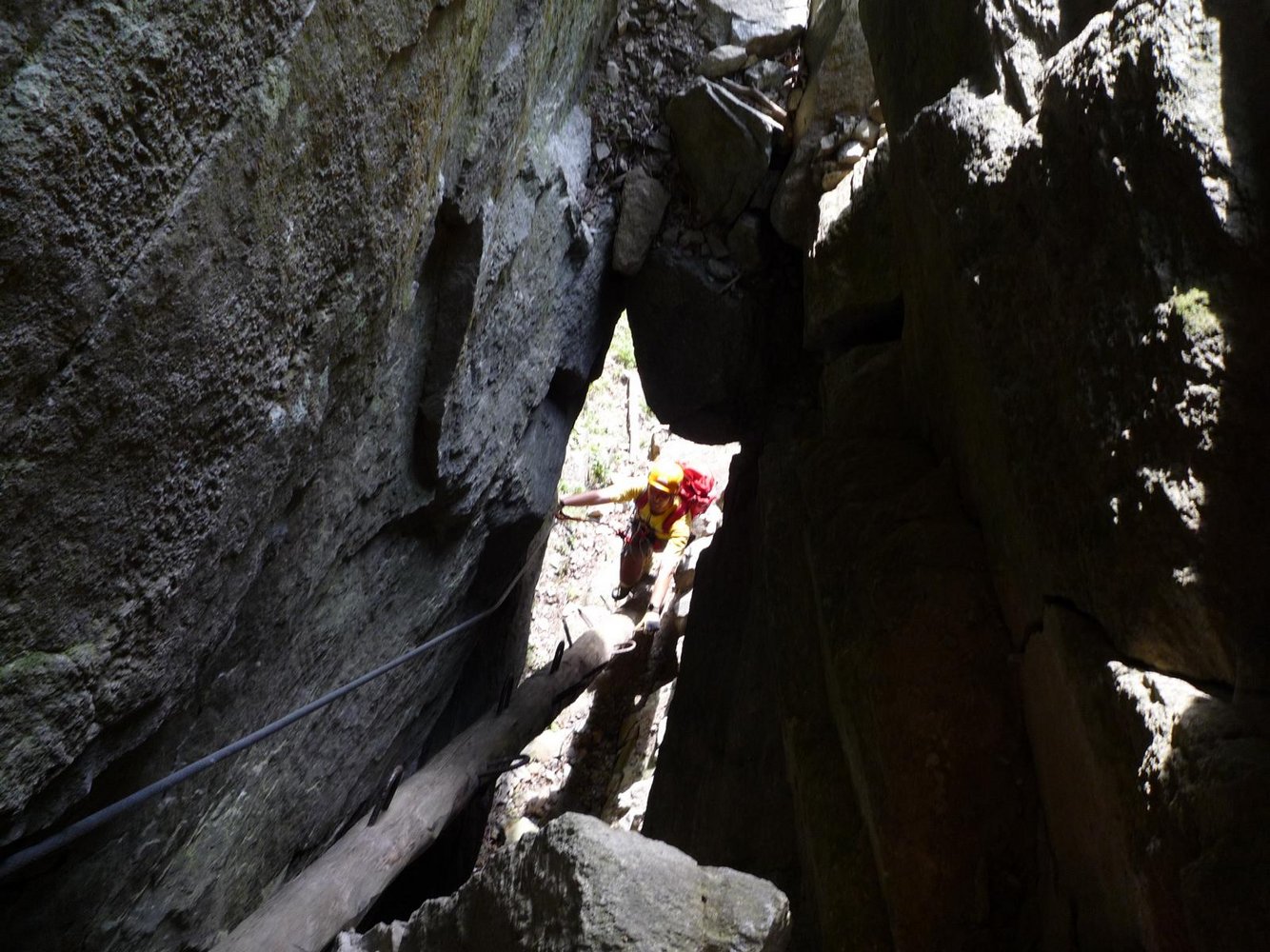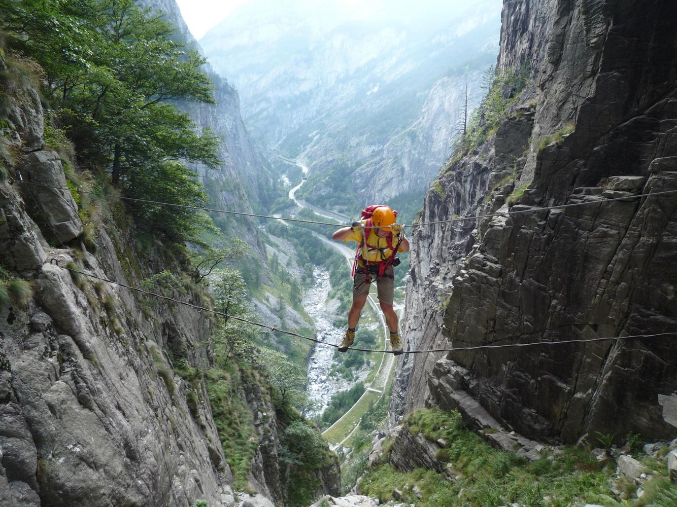 Der Schmugglersteig (Schmugglerweg) Gondo ist kein Klettersteig im herkömmlichen Sinn. Der Schwierigkeitsgrad „D“ ist bei dieser Tour sicher nicht das Hauptkriterium. Neben den nötigen Abseilkenntnissen ist es vor allem die schwierige Orientierung beim Abstieg, die weniger erfahrenen Bergsteigern schnell zum Verhängnis werden kann. Bei der Recherchebegehung waren die Versicherungen des Hauptteils in schlechtem Zustand, aber begehbar. Die extrem luftige Ausstiegsvariante direkt zur „Oberen Wand“ präsentierte sich jedoch in derart schlechtem Zustand, dass von einer Begehung abgesehen werden musste. Auf die Ausstiegsvariante wird in diesem Führer daher auch nicht näher eingegangen. Die Zukunft dieses Steiges ist ungewiss, da es angeblich auch Differenzen mit dem Grundeigentümer gibt. An den Felswänden der Oberen Wand könnte man aber eine tolle Ferrata bauen und Teile des Schmugglerweges einfließen lassen.