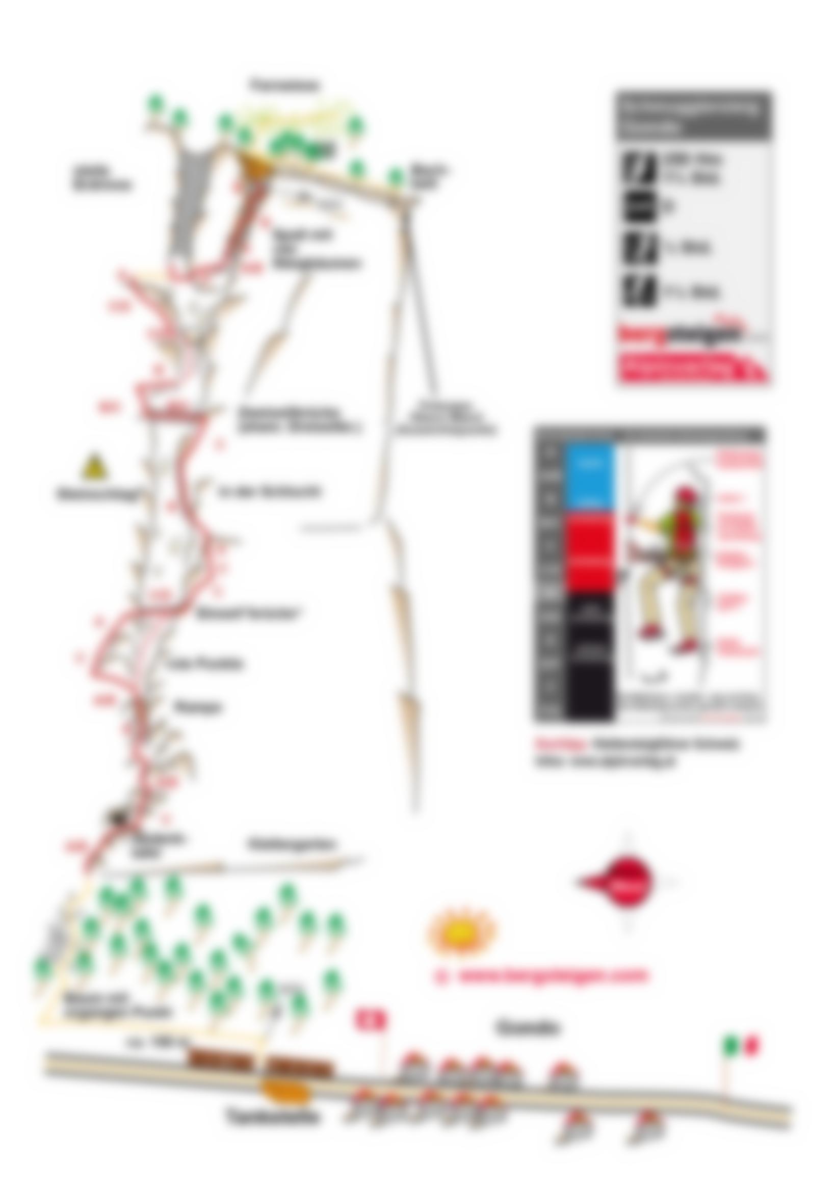Achtung: Stand Sommer 2019 – der Klettersteig wird nicht mehr gewartet. Teilweise sind die Sicherungsseile eingerissen. Eine Begehung – wenn überhaupt - nur mit Bergführer oder für sehr erfahrene Alpinisten ratsam.