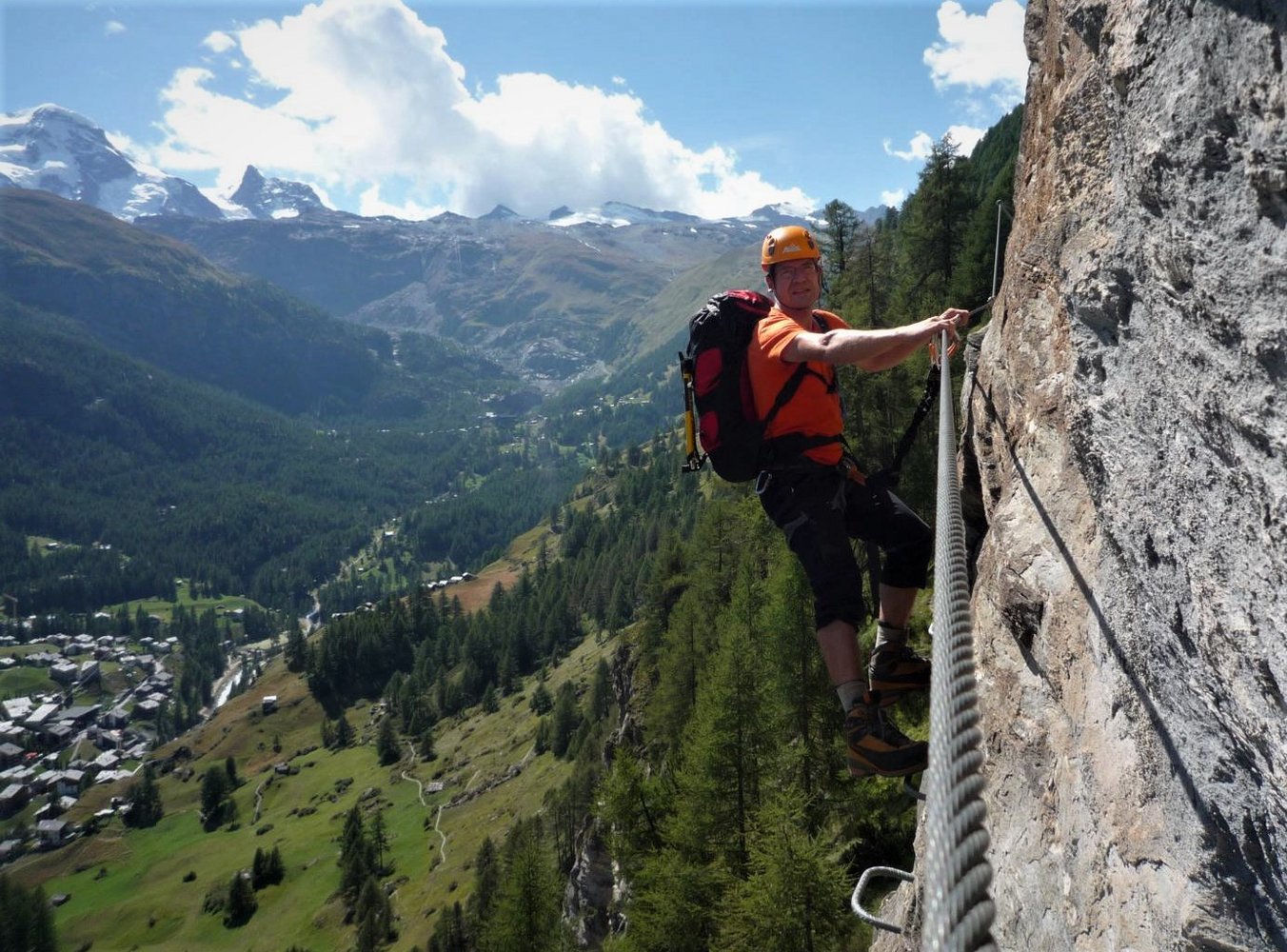 Schöner Steig, dem etwas das alpine Flair fehlt. Wer die Route C macht, sollte deren Länge (ca. 1,9 km) nicht unterschätzen und auch ausreichend Wasser mitnehmen, da es in der Südostwand sehr heiß werden kann und der Wasserhahn am Ende der Route C nur ein Fake ist. In Zermatt gibt es auch einen Adventure-Klettersteig durch die Gornerschlucht zwischen Furi (1867 m) und Zermatt (1616 m). Dort warten neben imposanten Gesteinsformationen (Gletschermühlen, wassergeschliffene Felsen) und donnernden Wassermassen auch drei Abseilstellen, drei Seilbahnen (die längste ca. 80 Meter), ein Pendel und Himalayabrücken. Eine Begehung ist nur mit Bergführer möglich. Info im Alpin Center.