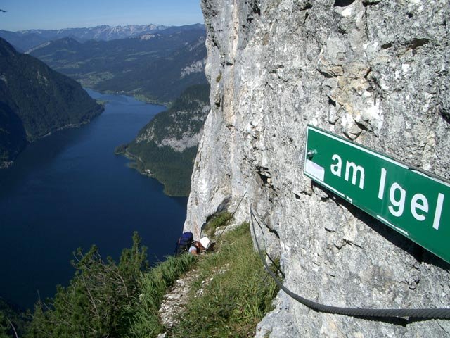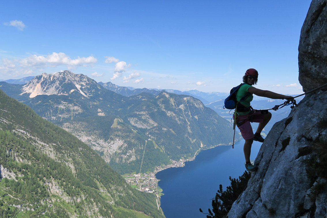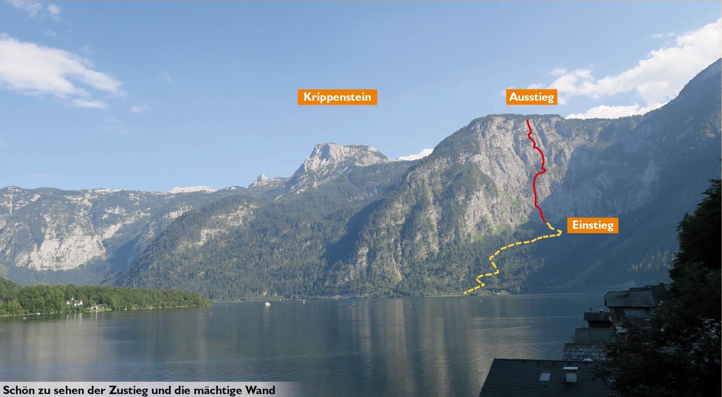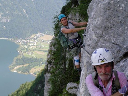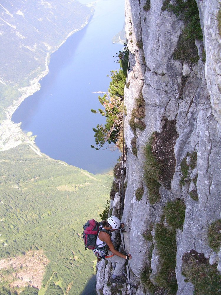 Dieser Sportklettersteig ist eine wirklich steile Sache! Der Steig ist sehr lang und schwer und somit zu Recht mit D/E bewertet. Die Erbauer um H. Putz haben sehr gute Arbeit geleistet. Es fängt schon bei der Markierung an, die vielen Tafeln sind vorbildlich. Leider sind durch die vielen Begehungen die Graspolster etwas weniger bzw. die schweren Stellen etwas mehr geworden. Meist ist es eine feuchte Angelegenheit und man rutscht in den Gras- und Erdpassagen ziemlich umher (gute Schuhe sind von Vorteil). Gesamt gesehen ein tolles Erlebnis mit ständigem Ausblick zum azurblauen Hallstätter See. Der Sportklettersteiggeher wird bei diesem Mega-Abenteuer auf seine Rechnung kommen; der Einsteiger ist aber fehl am Platz.