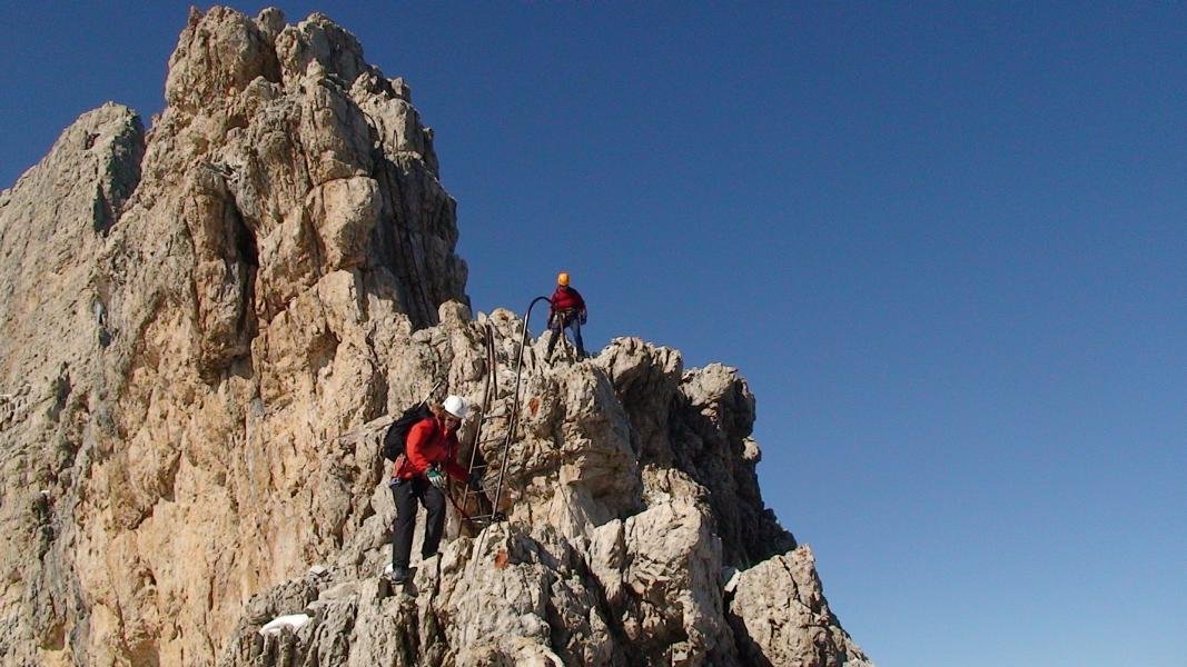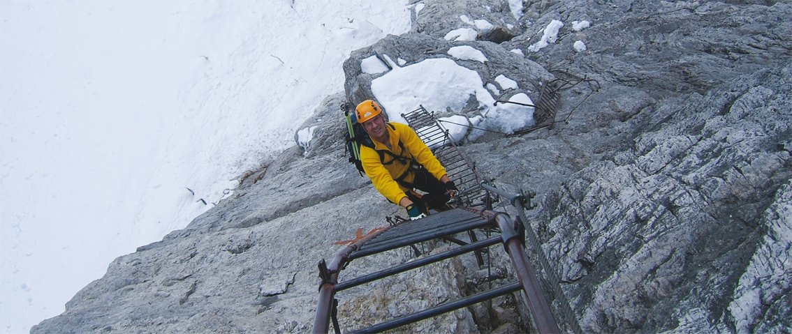 Komplette Klettersteigausrüstung und Helm. In der Vor- und Nachsaison evtl. Steigeisen und Leichteispickel.