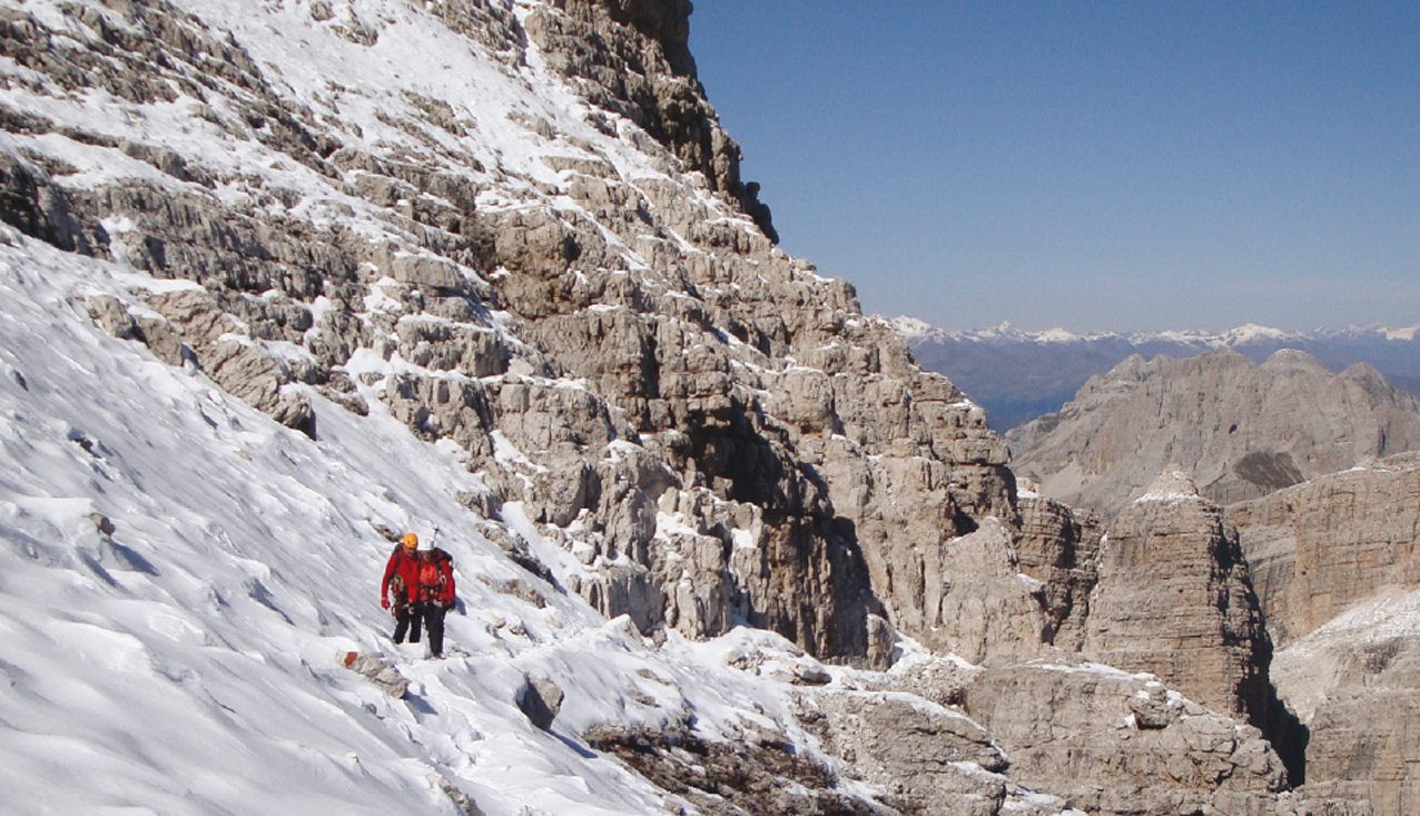 Das vertikale Highlight der Brentadurchquerung ist der Sentiero Bocchette Alte. Bei einem ständigen auf und Ab über ausgesetzte Leitern und schöne Querpassagen auf den "Brentabändern" kommt Dolomitenfeeling der Extraklasse auf! Zum Rifugio Alimonta kann man am Ende des Steiges über gut gesicherte Leiterpassagen absteigen.